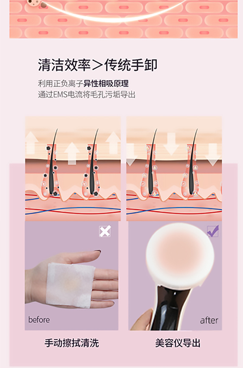 4.恒温热敷+高频震动+深层清洁(可以使用卸妆棉)