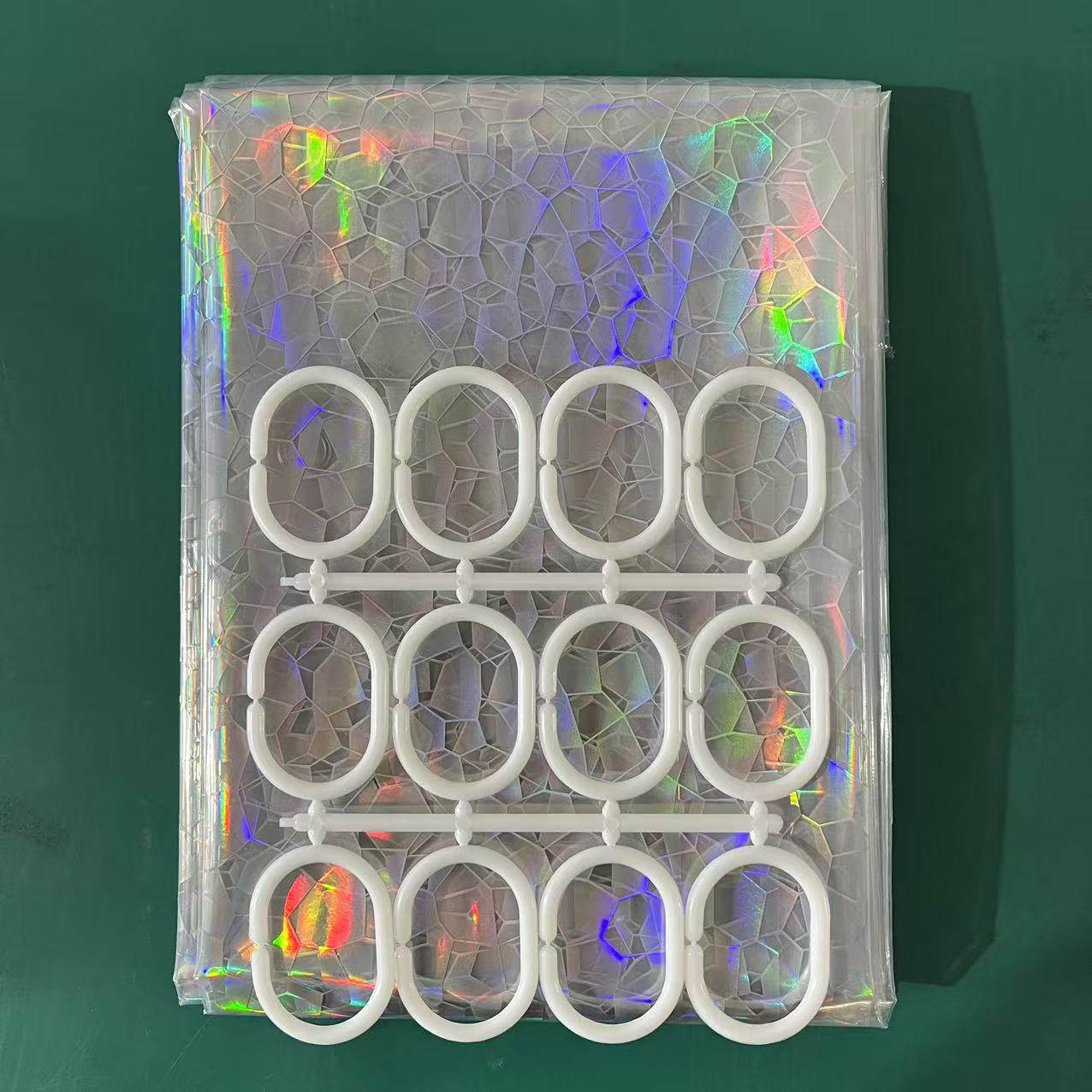 全息镭射真彩3D水立方浴帘7透明塑料浴室浴帘与防锈金属扣厂家