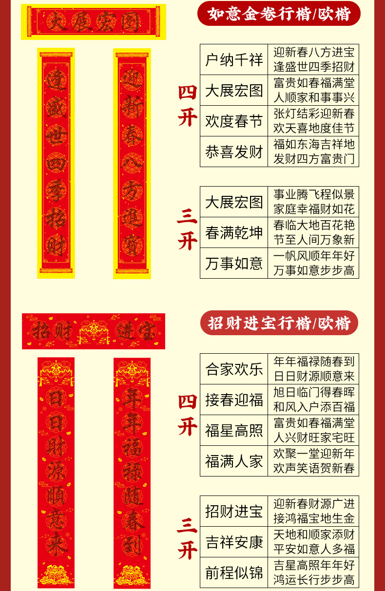 四开招财进宝欧楷(17*104cm)4副/包 ¥592 49935件可售