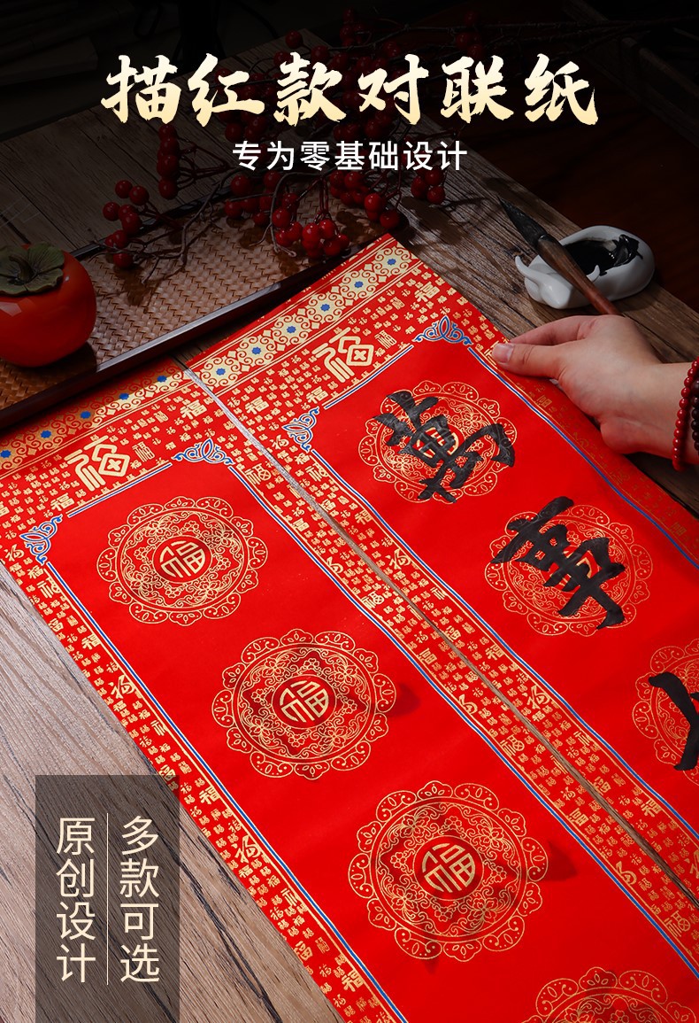 马年洒金春联批发摆摊蜡染春联描红对联纸宣纸万年红手写柳楷对联 English | 投诉