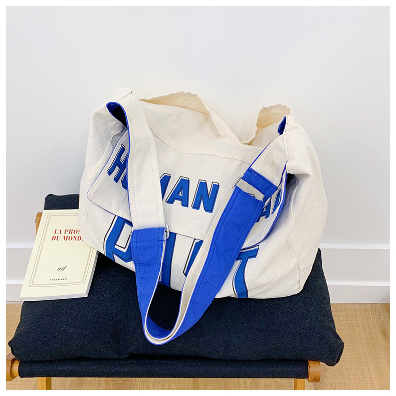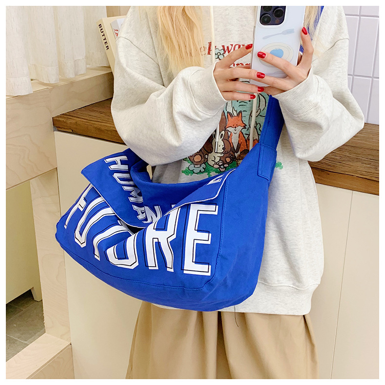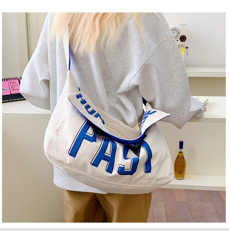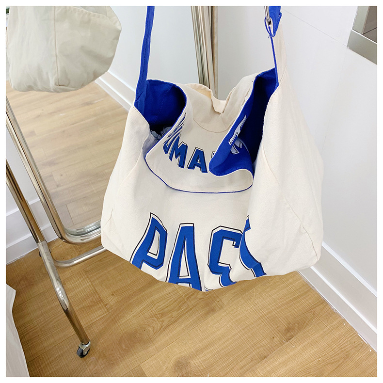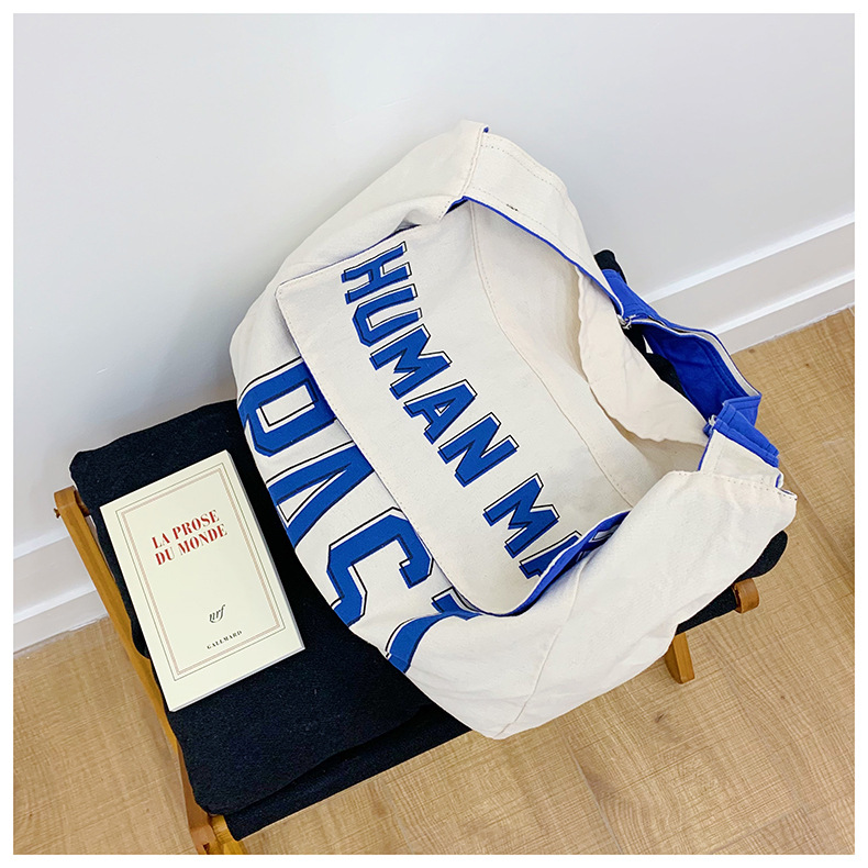 韩版ins潮流字母单肩包简约日系轻便时尚斜挎包百搭学生帆布挎包 投诉