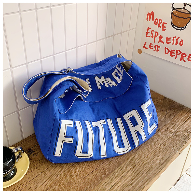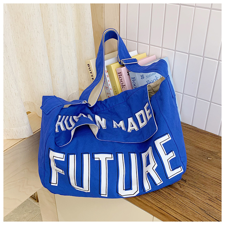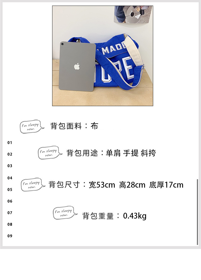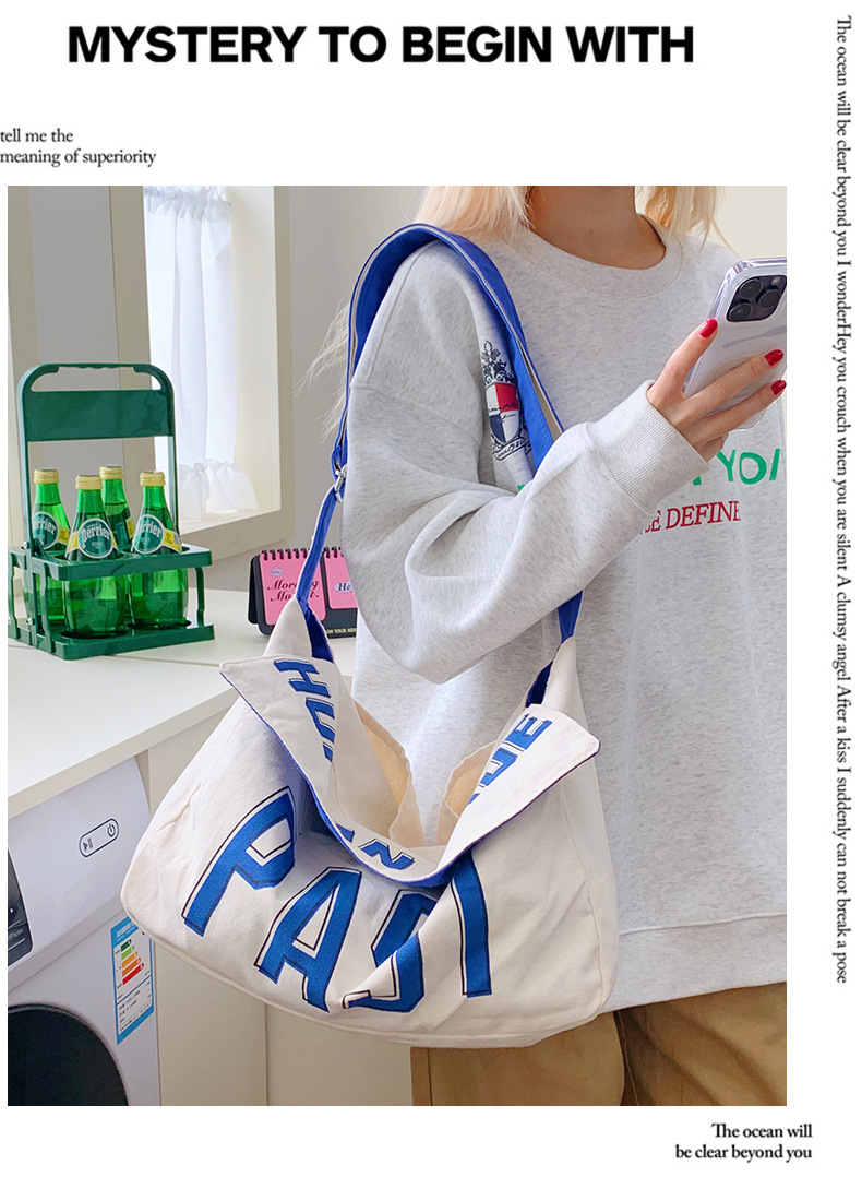 韩版ins潮流字母单肩包简约日系轻便时尚斜挎包百搭学生帆布挎包 投诉
