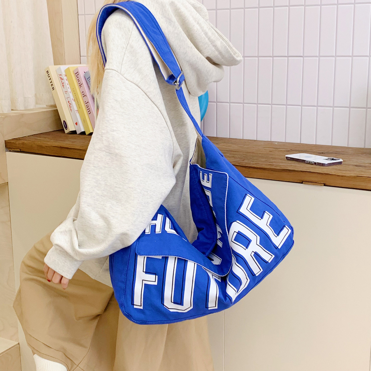 韩版ins潮流字母单肩包简约日系轻便时尚斜挎包百搭学生帆布挎包