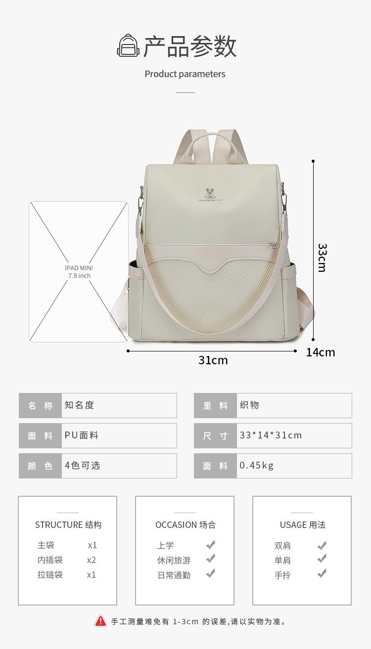 7043跨境双肩包女士防盗包多用旅行背包防泼水新耐磨休闲单肩包 English | 投诉