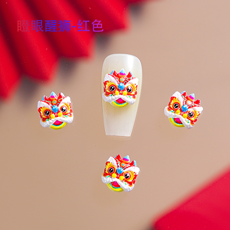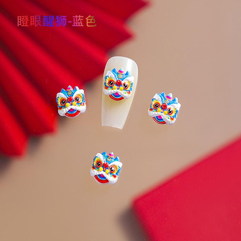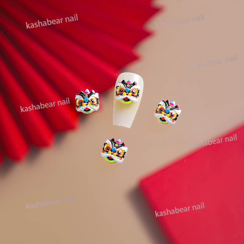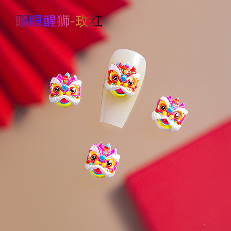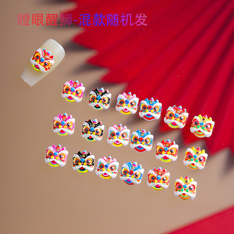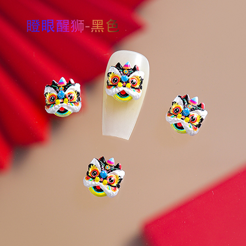 品名:国潮瞪眼醒狮舞狮美甲饰品