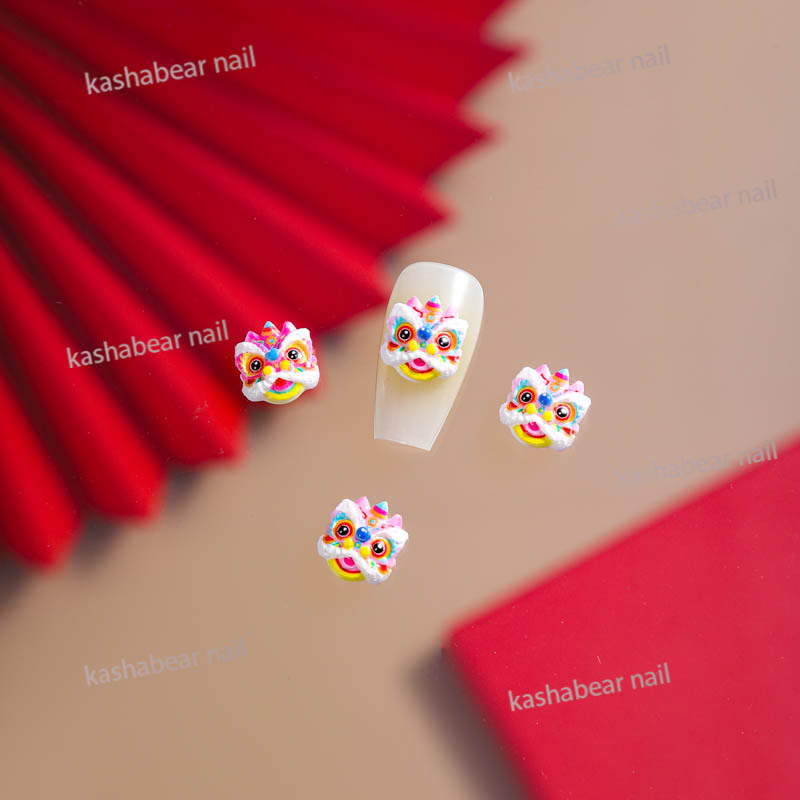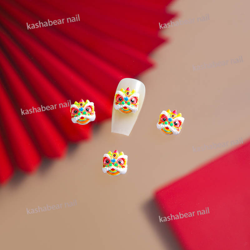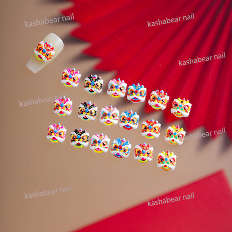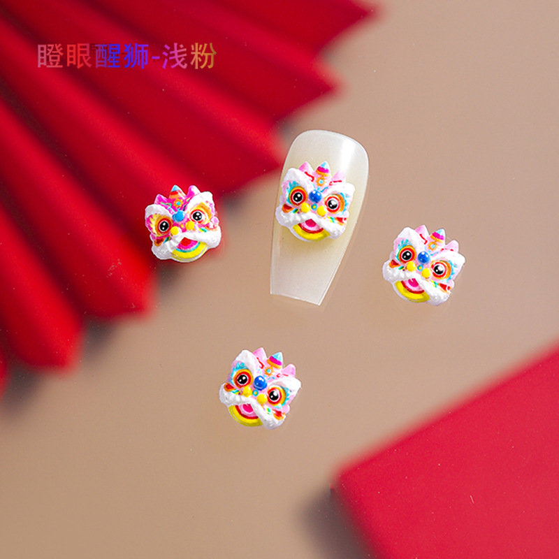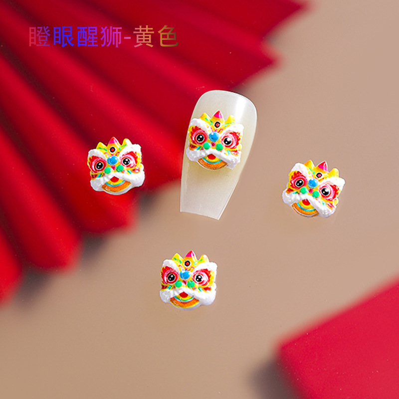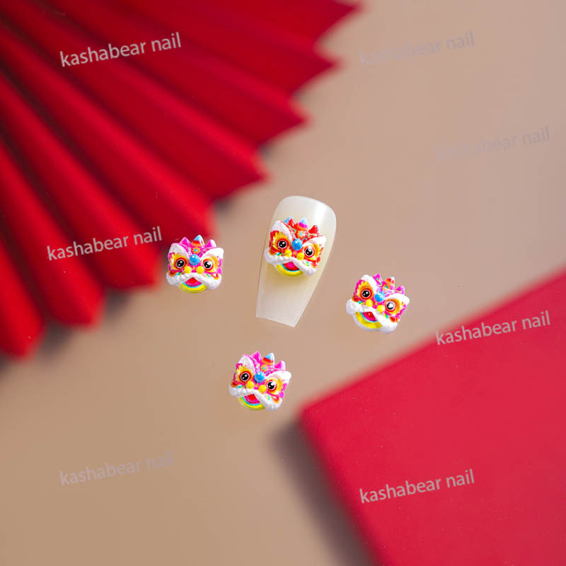 品名:国潮瞪眼醒狮舞狮美甲饰品