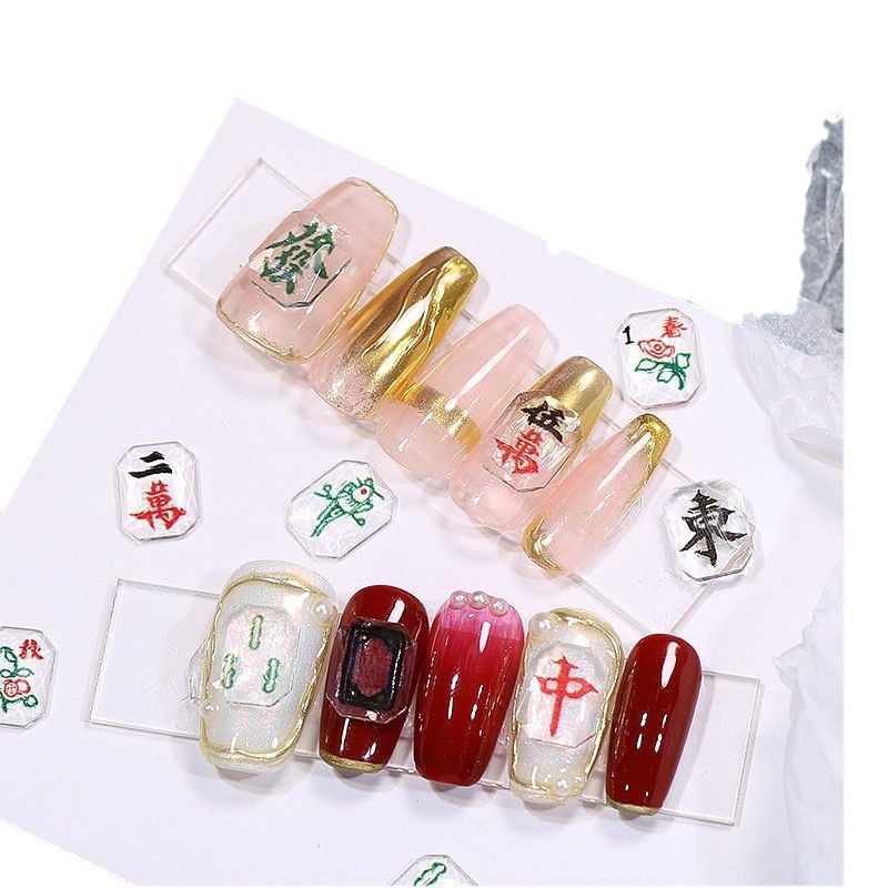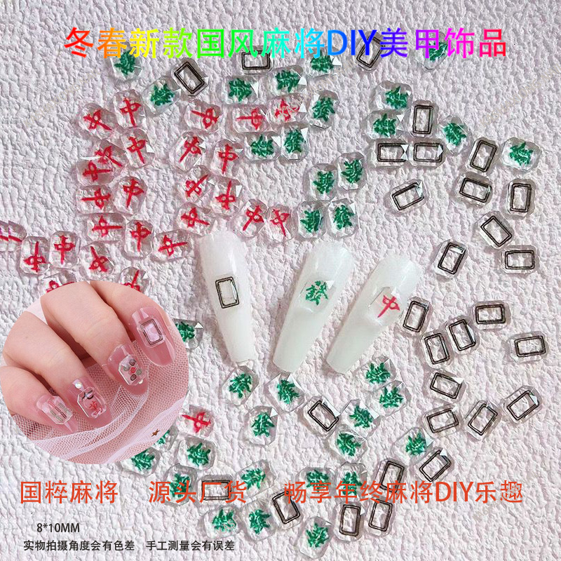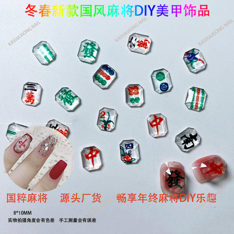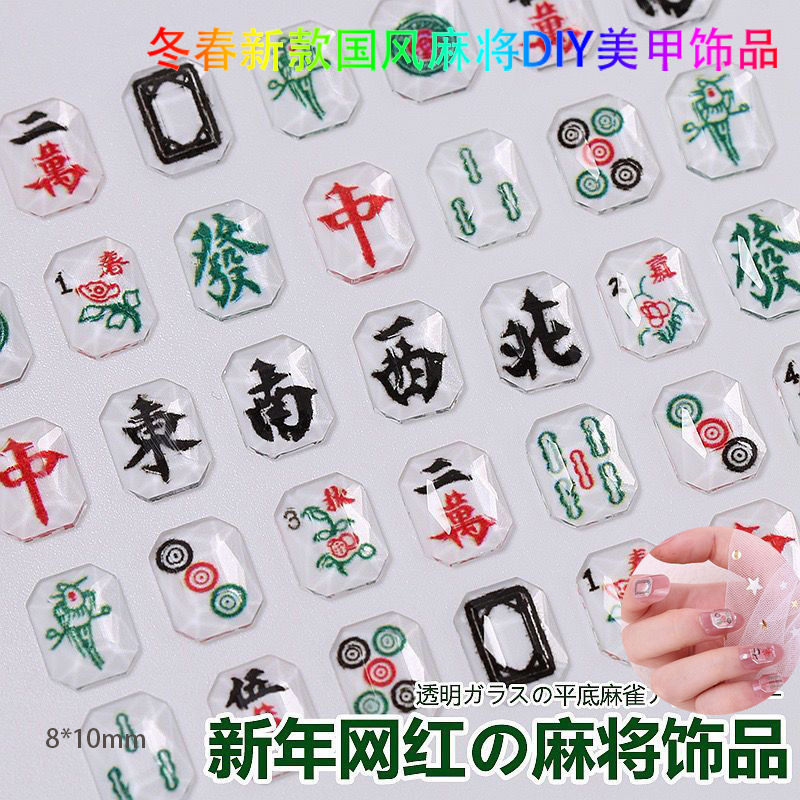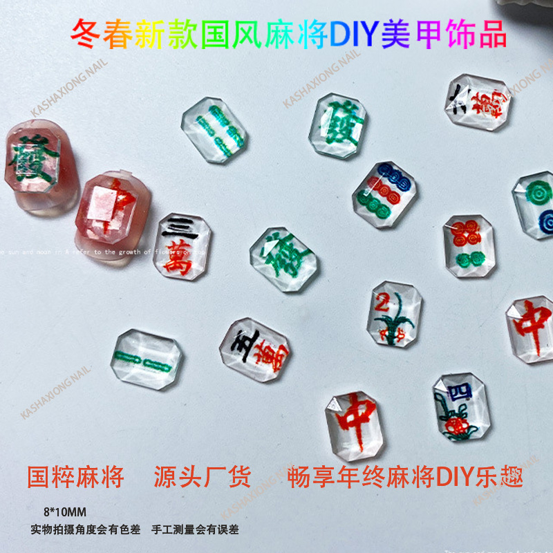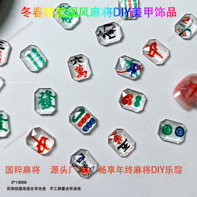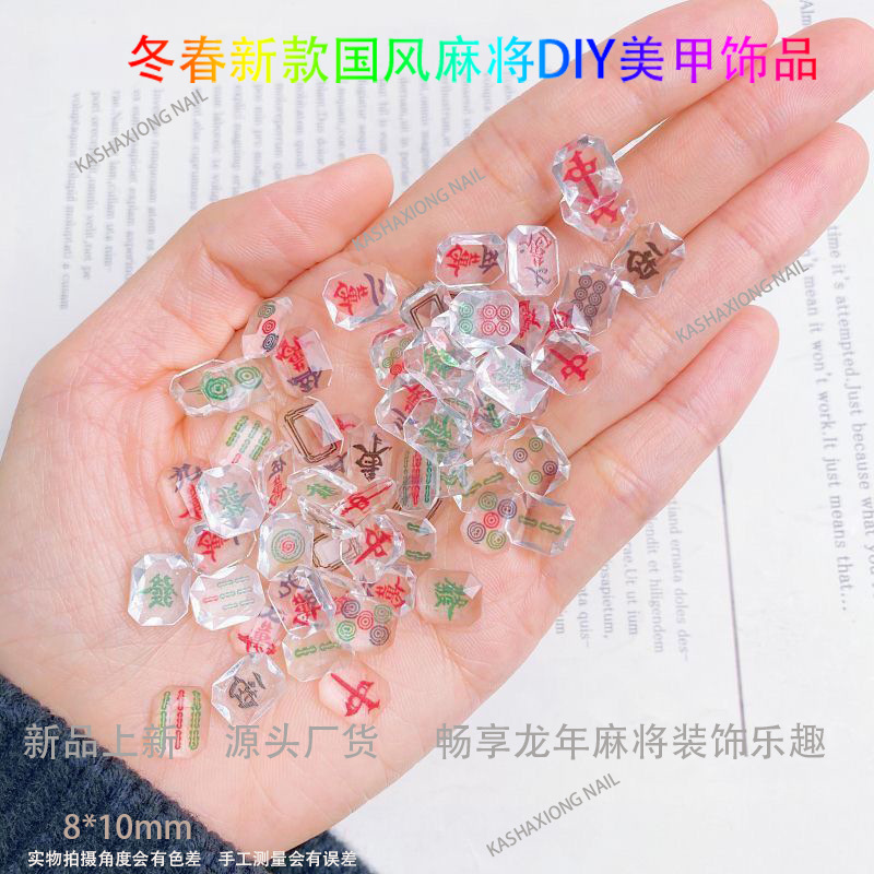 Ins网红麻将美甲饰品diy透色3D打印平底钻指甲钻国粹发财将牌配饰 English | 投诉