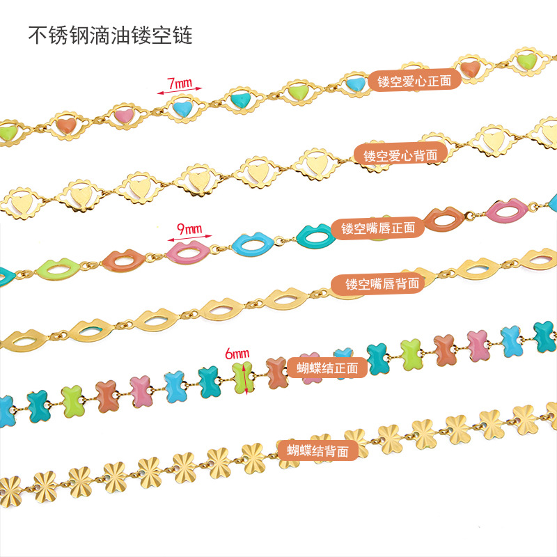 【尺寸】爱心链7mm,嘴唇链9mm,蝴蝶结链6mm 页面价是1米的单价