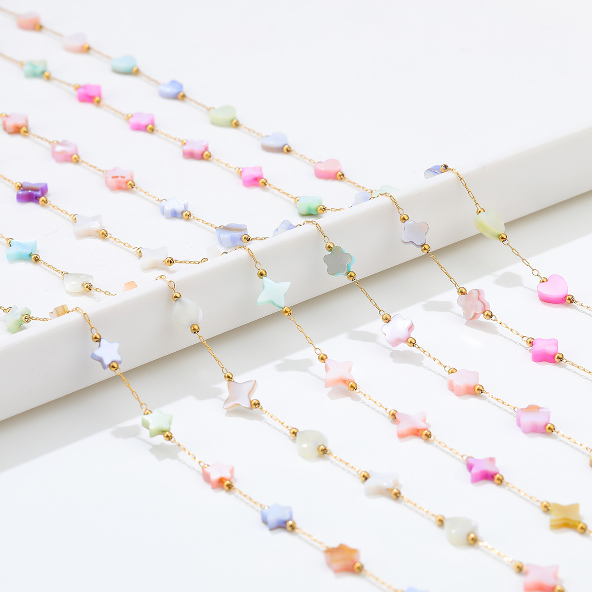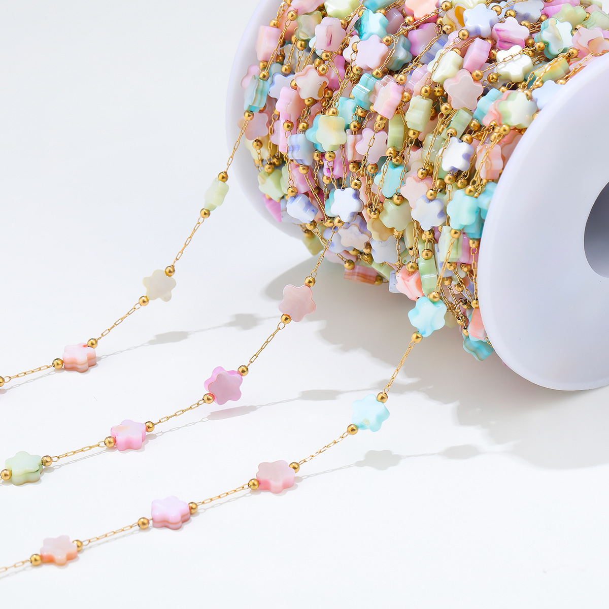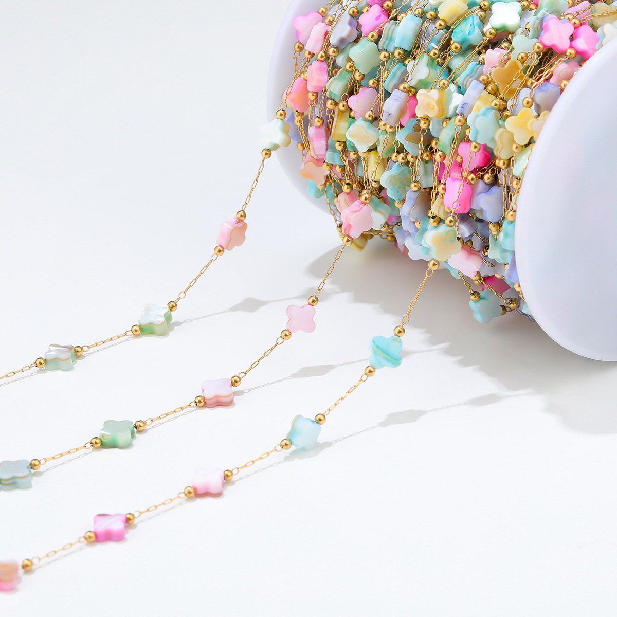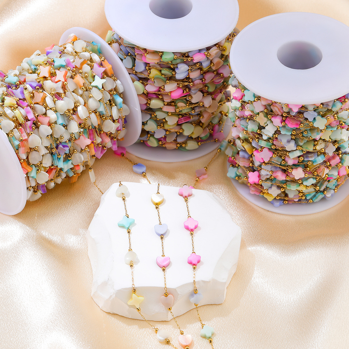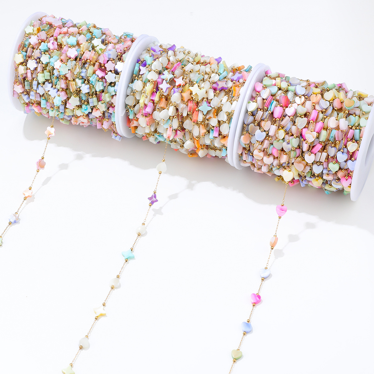 【品名】纯色混色花朵桃心手工链条
