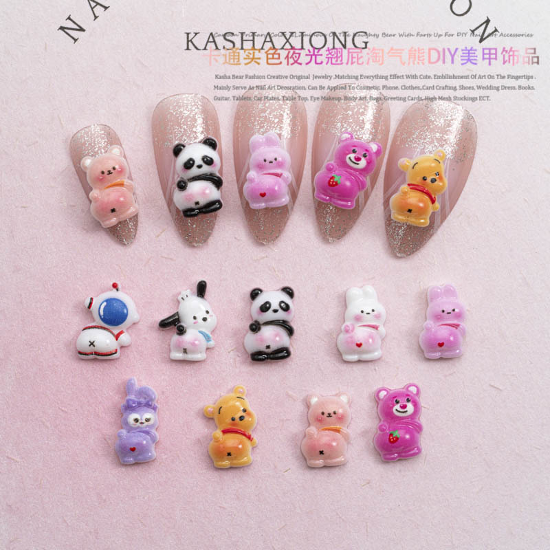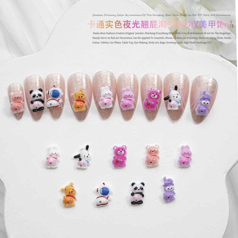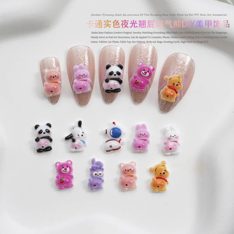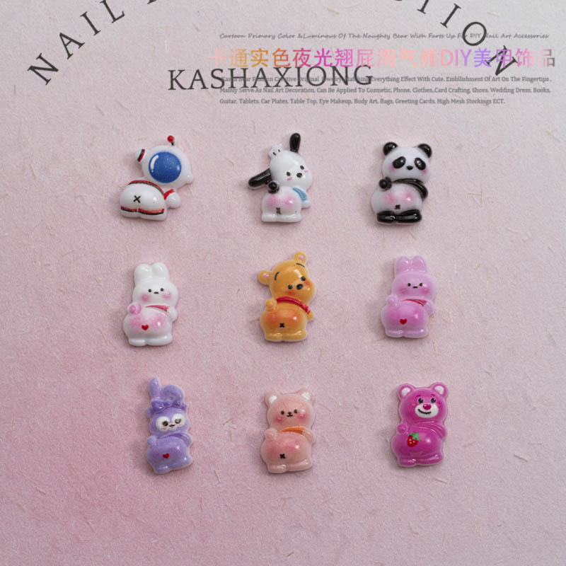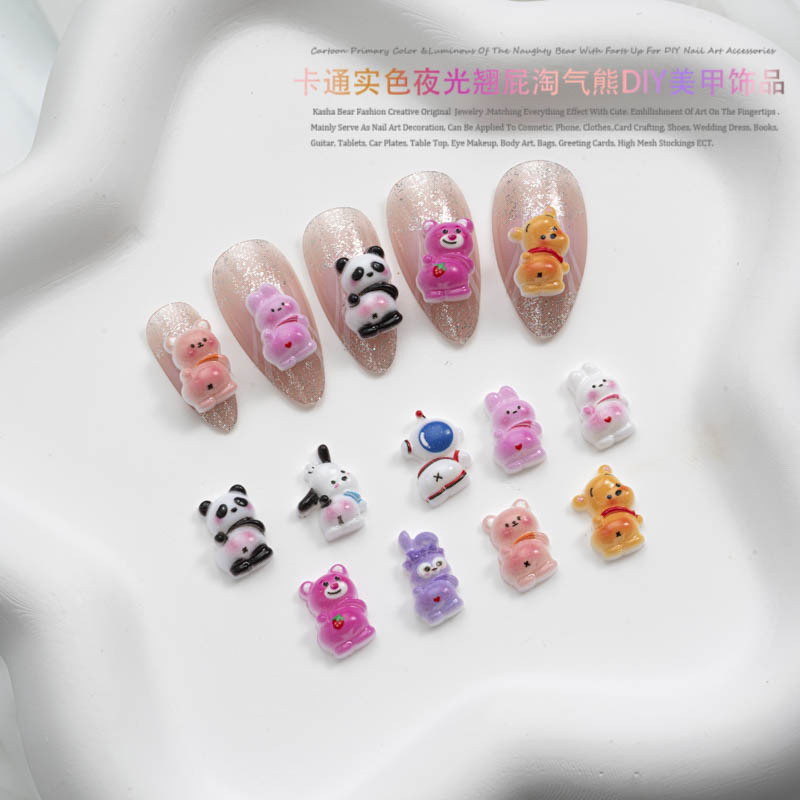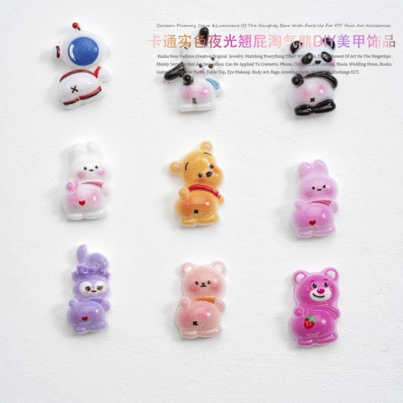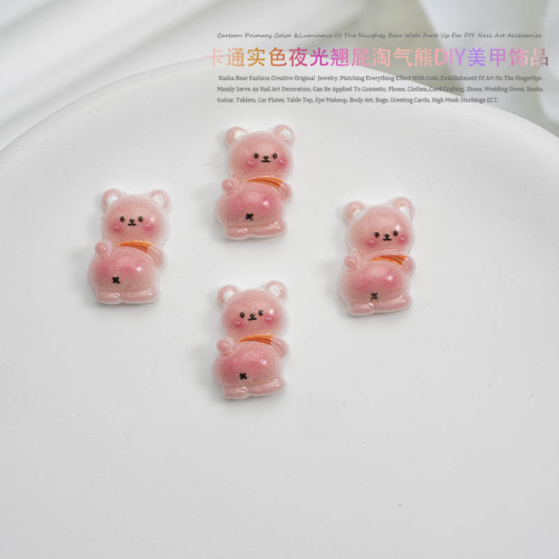 品名:卡通实色夜光款翘屁熊美甲饰品