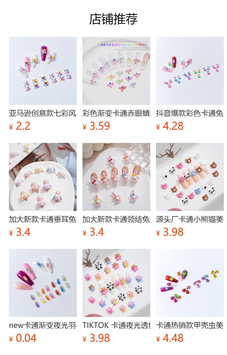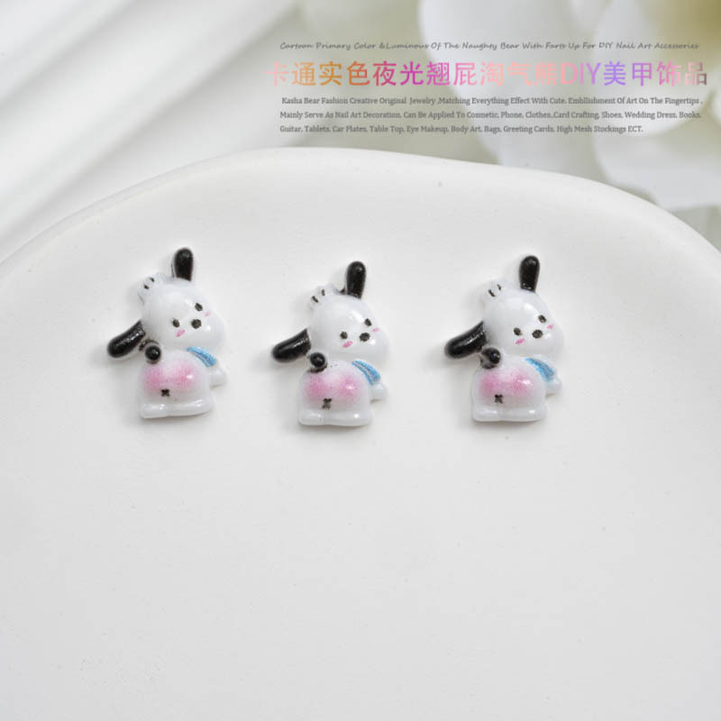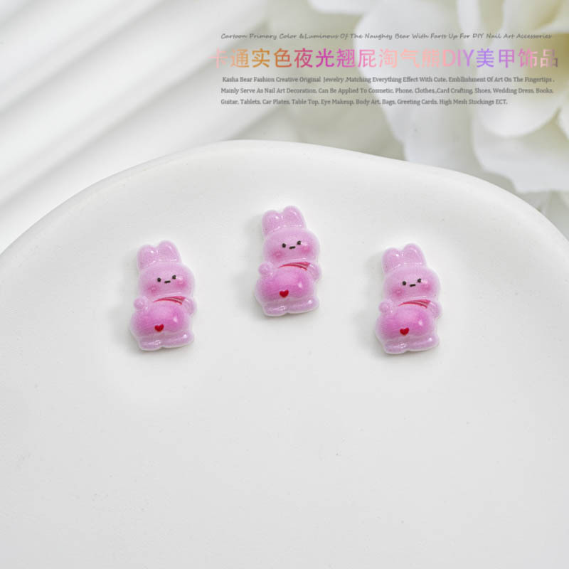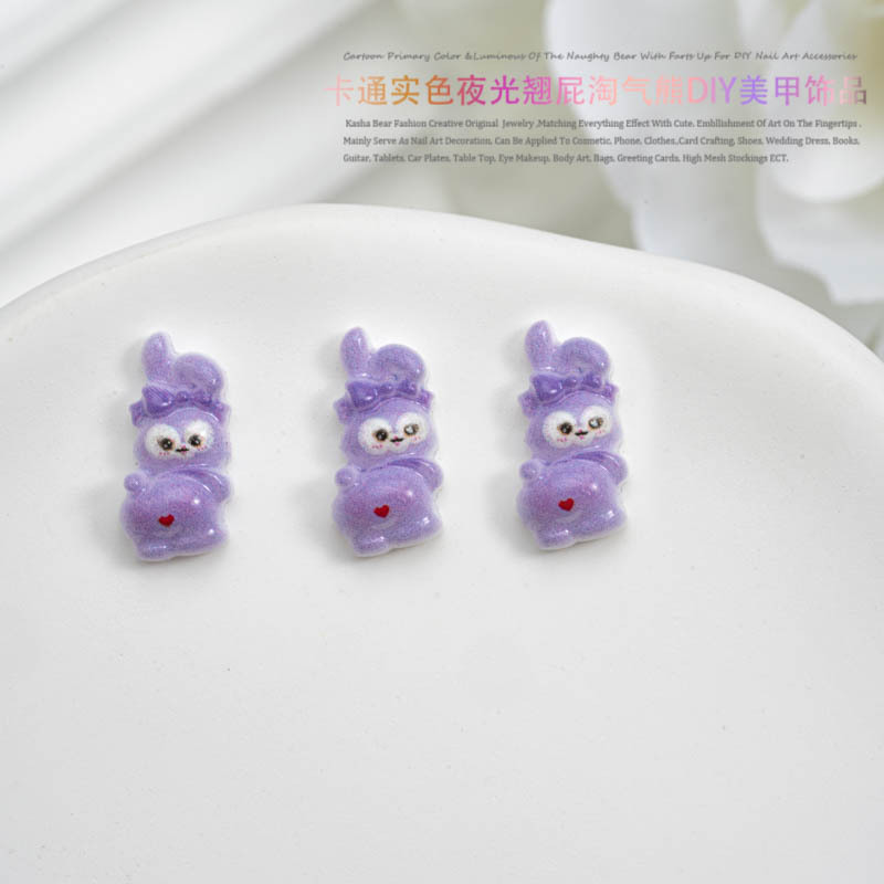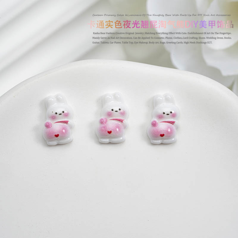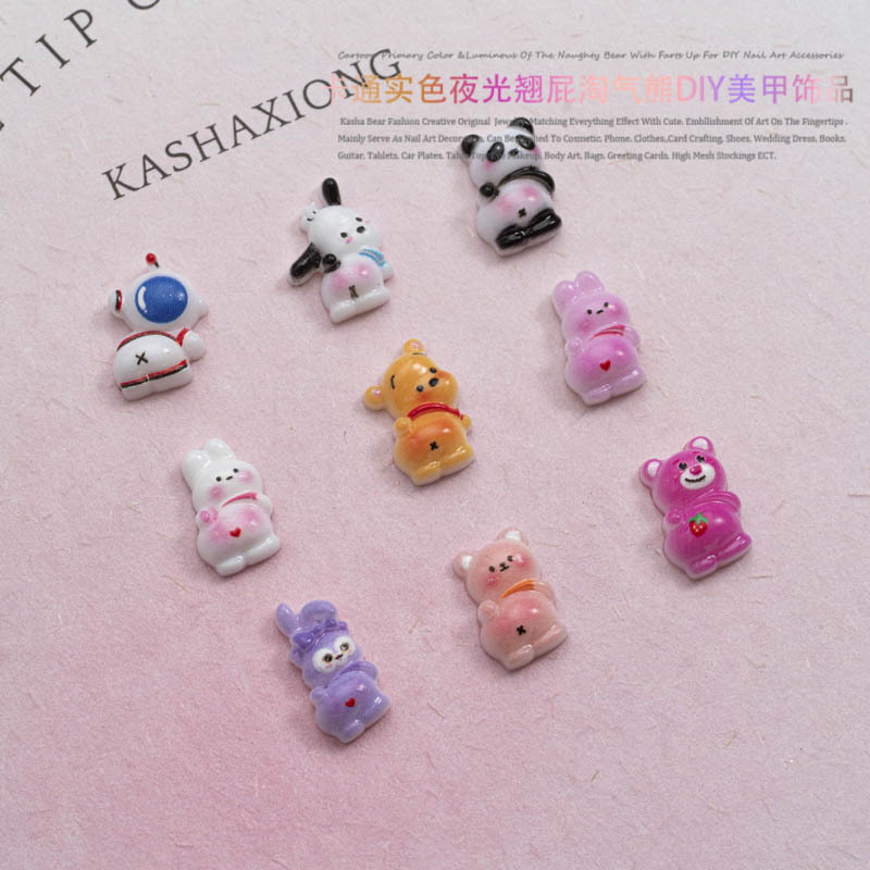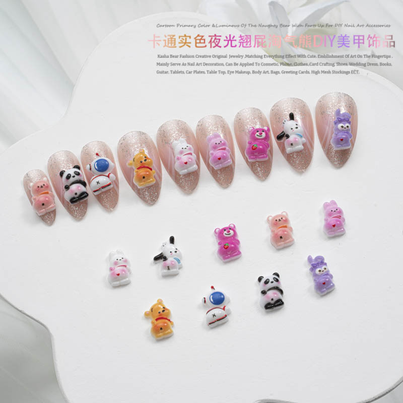 品名:卡通实色夜光款翘屁熊美甲饰品