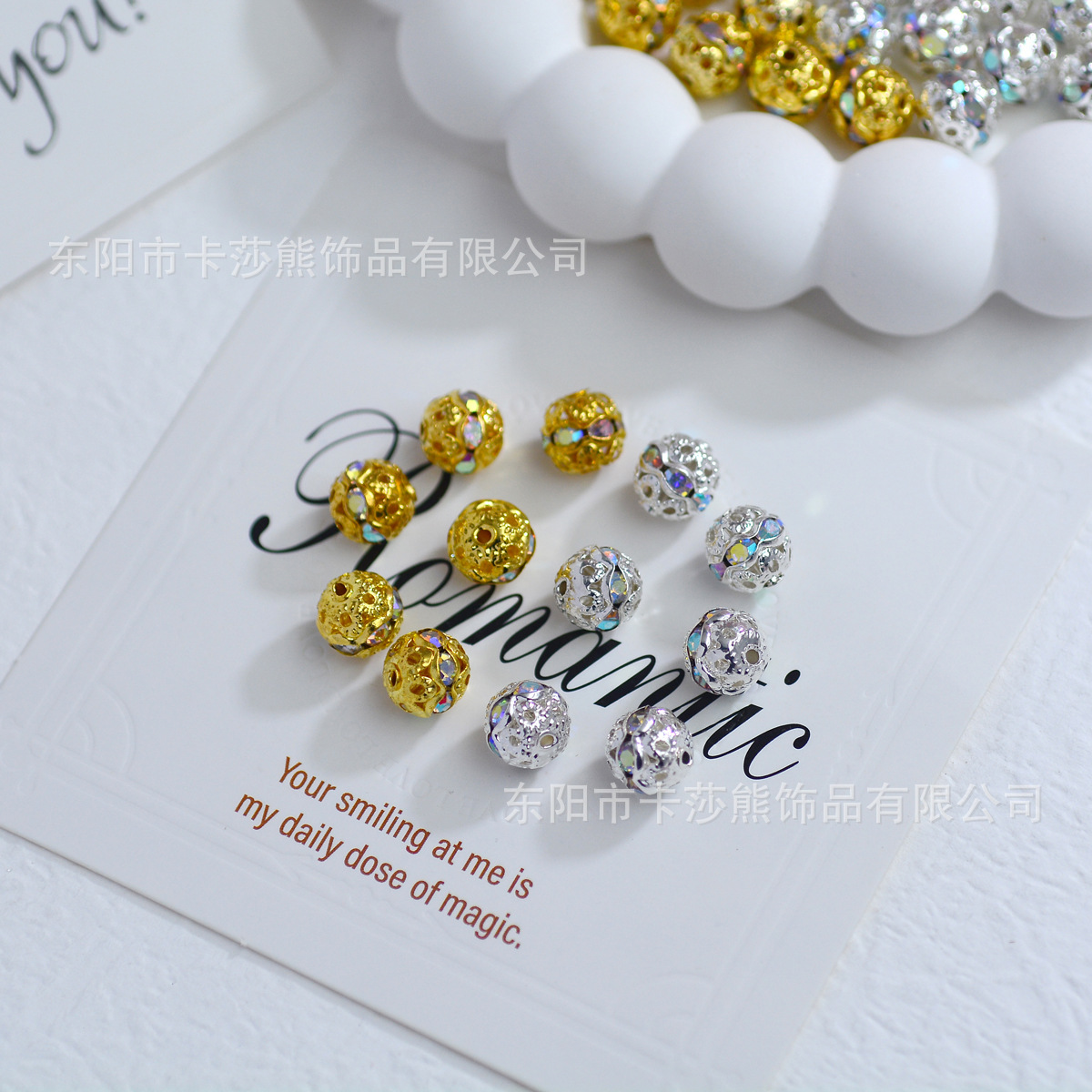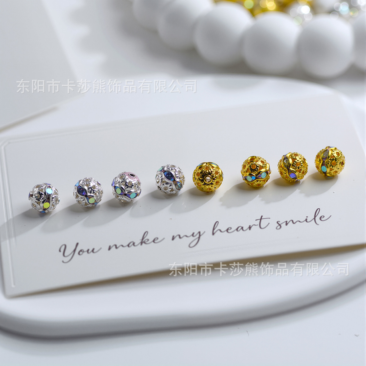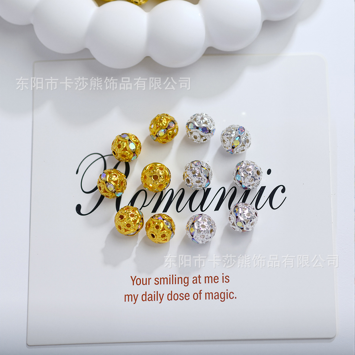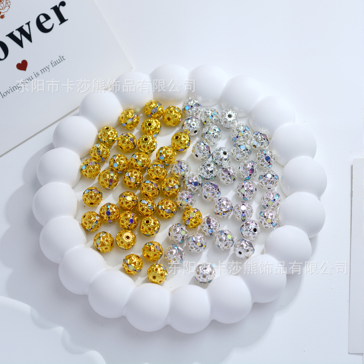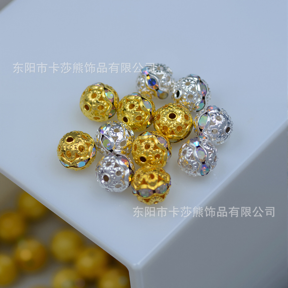 材质: 金属 处理工艺: 电镀 种类: 散珠 款式: 圆珠 尺寸: 8mm 产地: 浙江 货号: CQZ-002-七彩镂空镶钻珠 品牌: 其他 颜色: 金色,银色 型号: 6mm,8mm 是否跨境出口专供货源: 否 有可授权的自有品牌: 否 上市年份/季节: 2025年秋季 风格: 轻奢风 图案: 镂空花 重量: 0.001 kg/颗