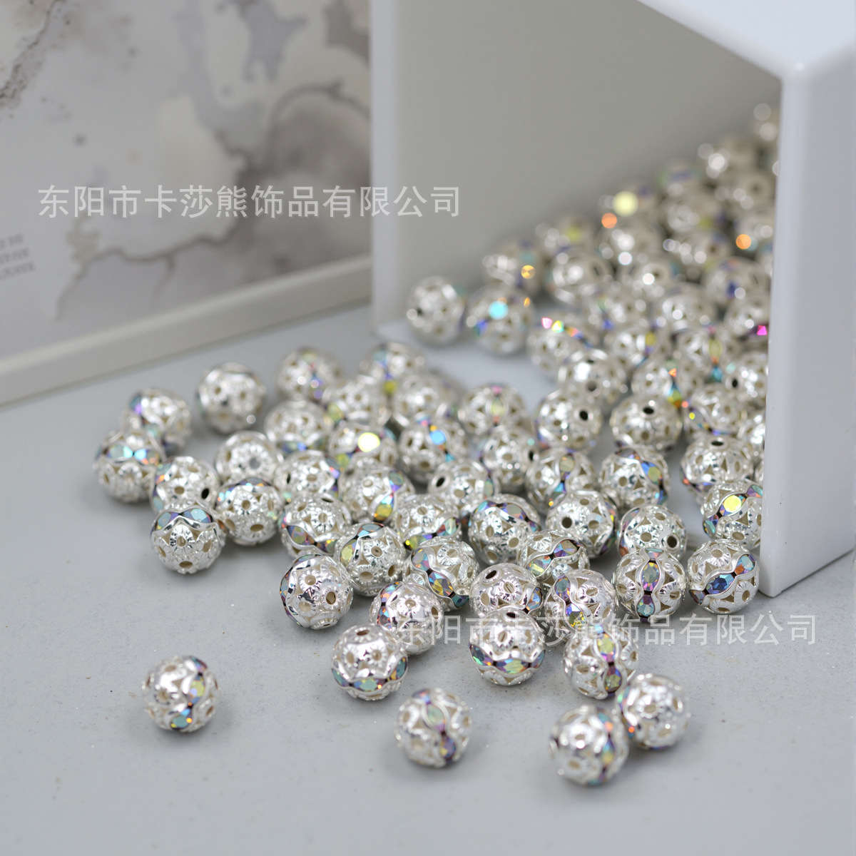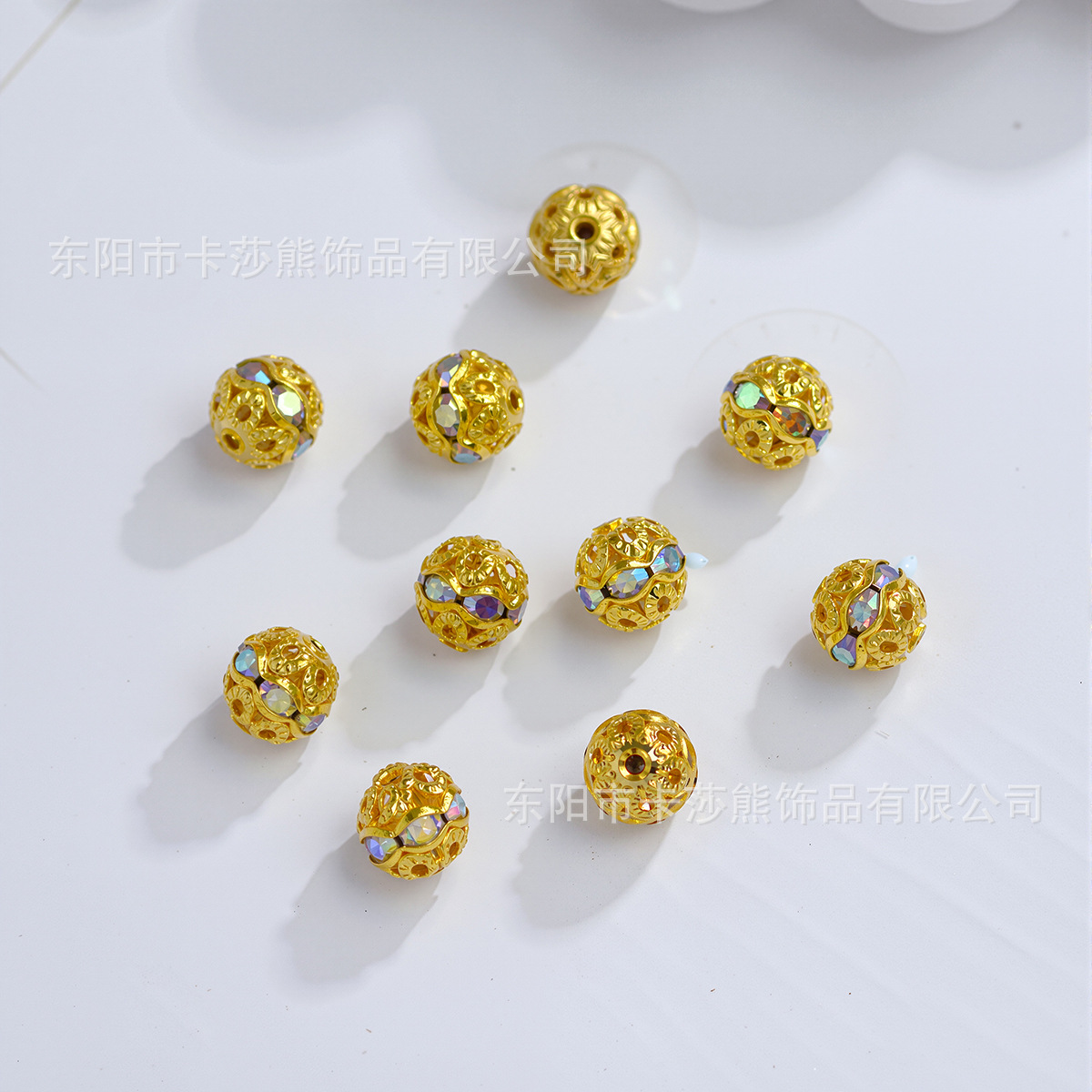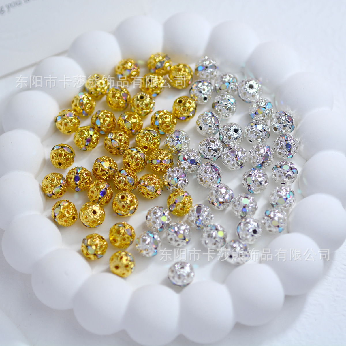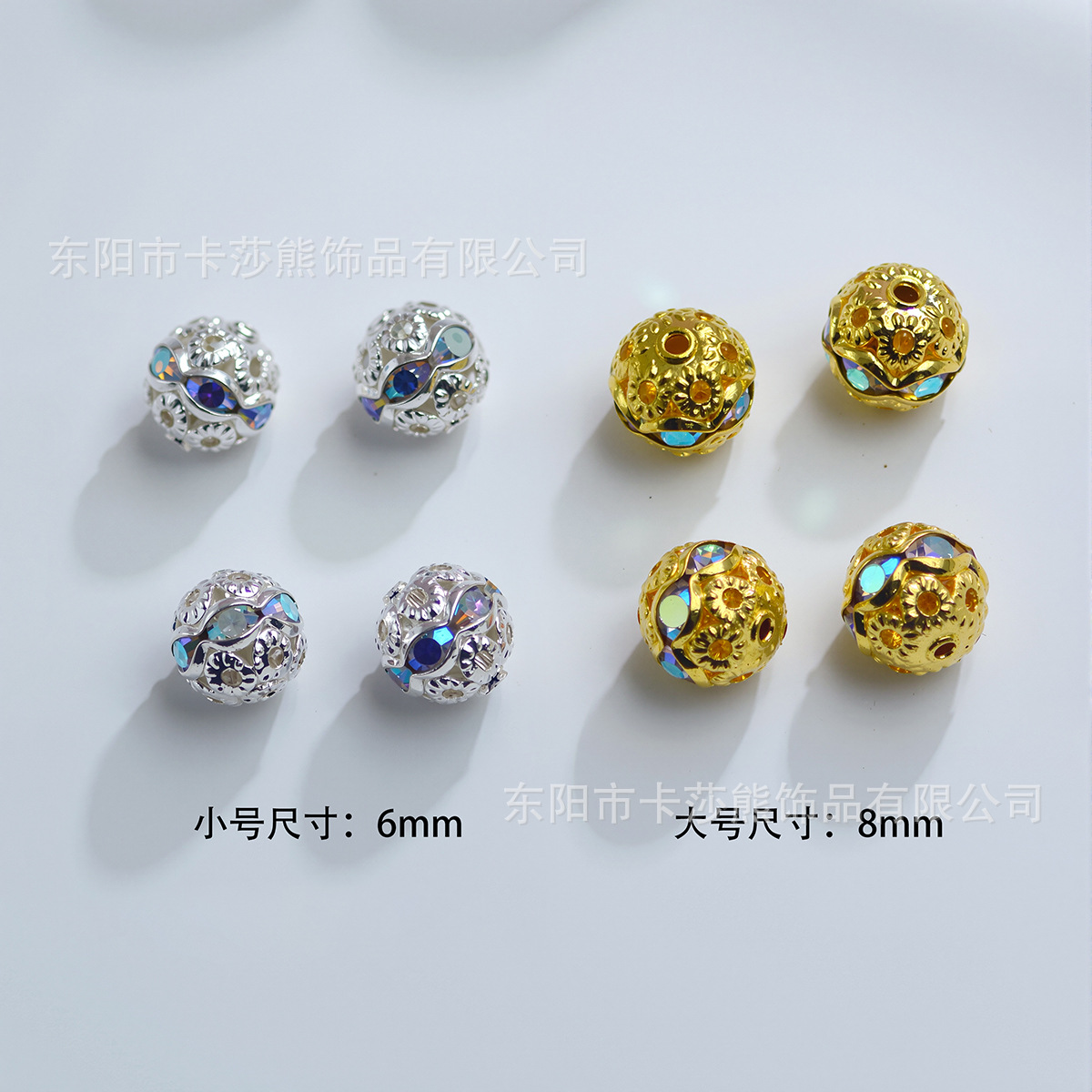 6-8mm七彩镂空镶钻珠diy手工材料帽子球隔珠手链项链古风装饰配件 English | 投诉