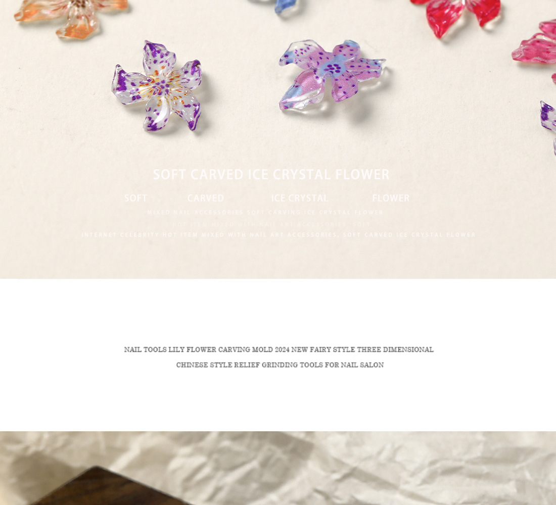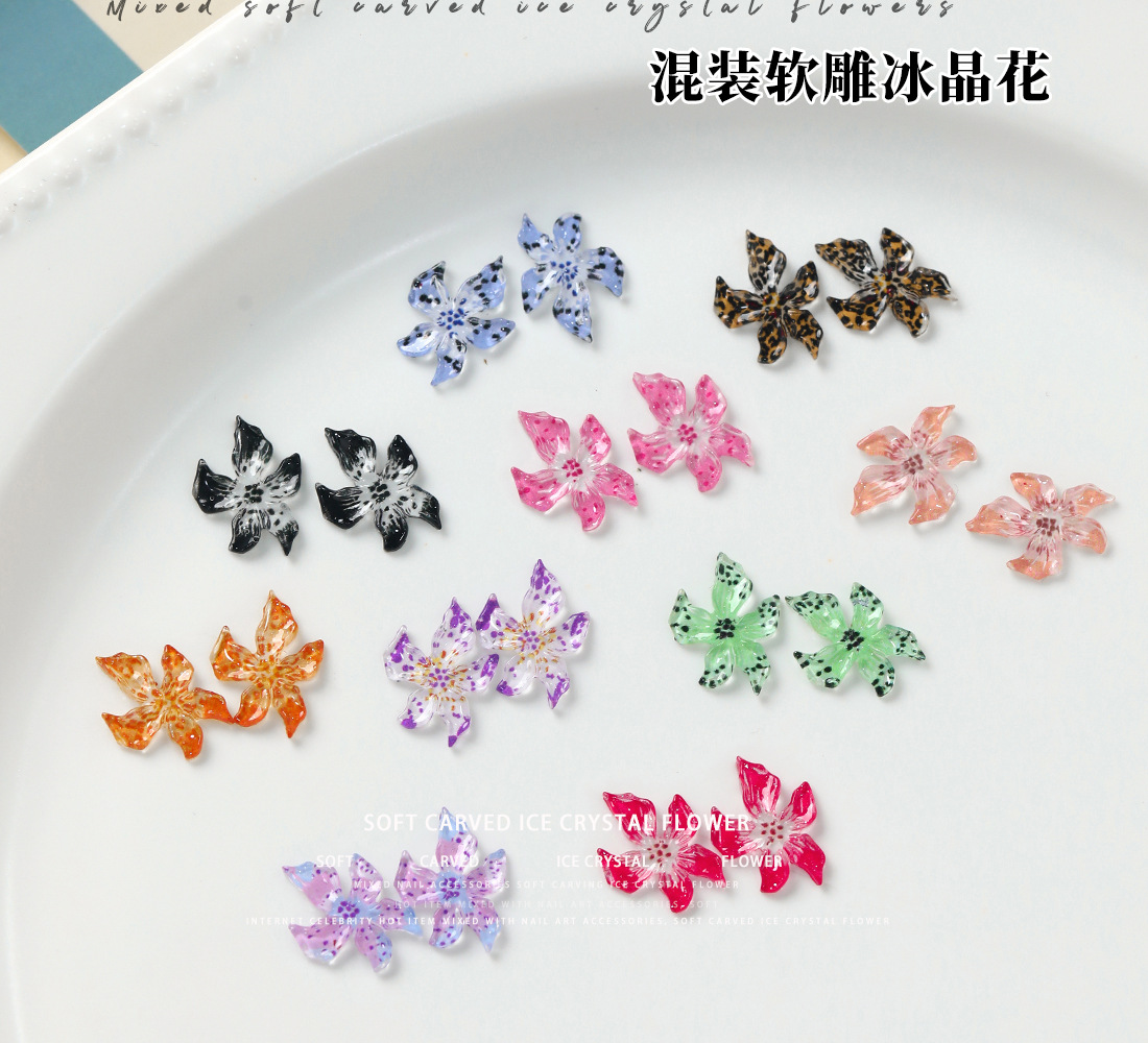 美甲软雕冰晶花饰品果冻白合花卉立体百搭五瓣花混装树脂美甲配饰 English | 投诉
