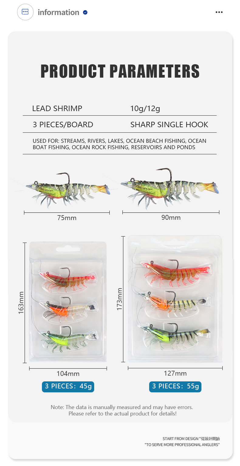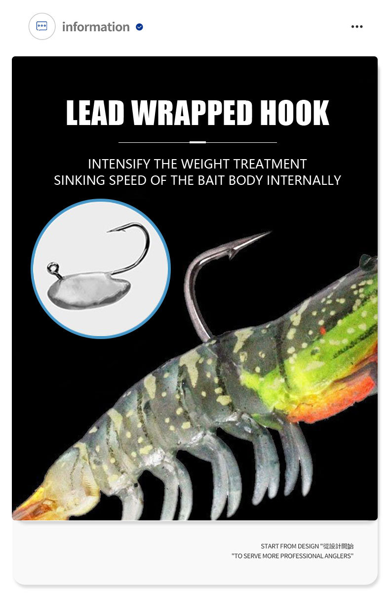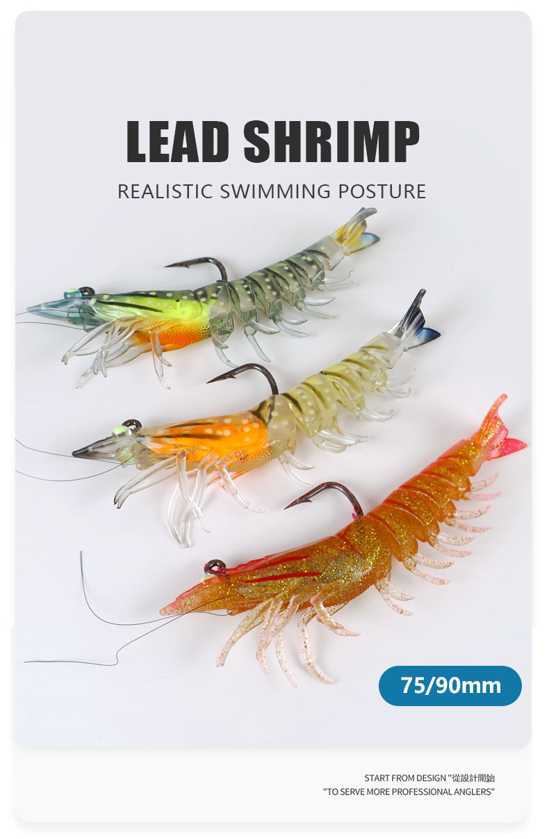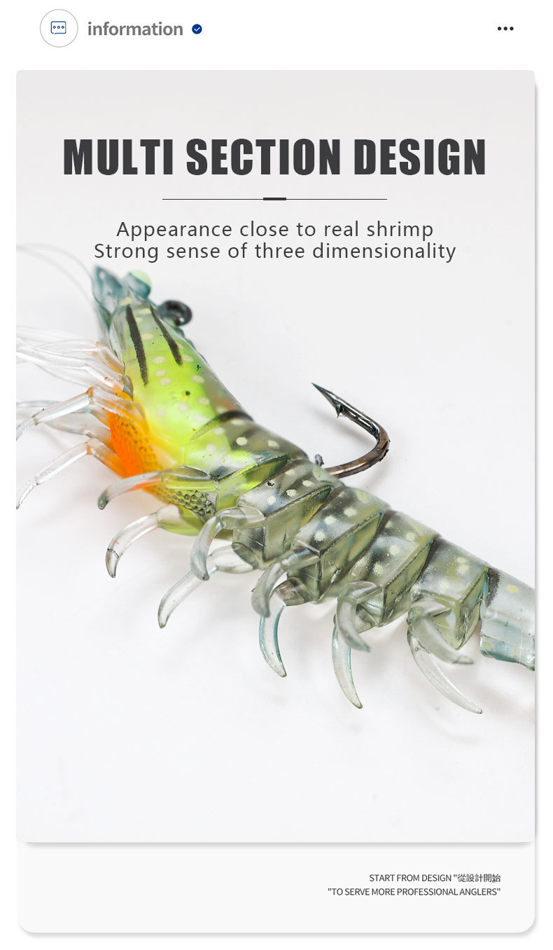 路亚饵3只装虾型软饵仿生多节虾包铅虾大对虾假虾软饵淡水海钓