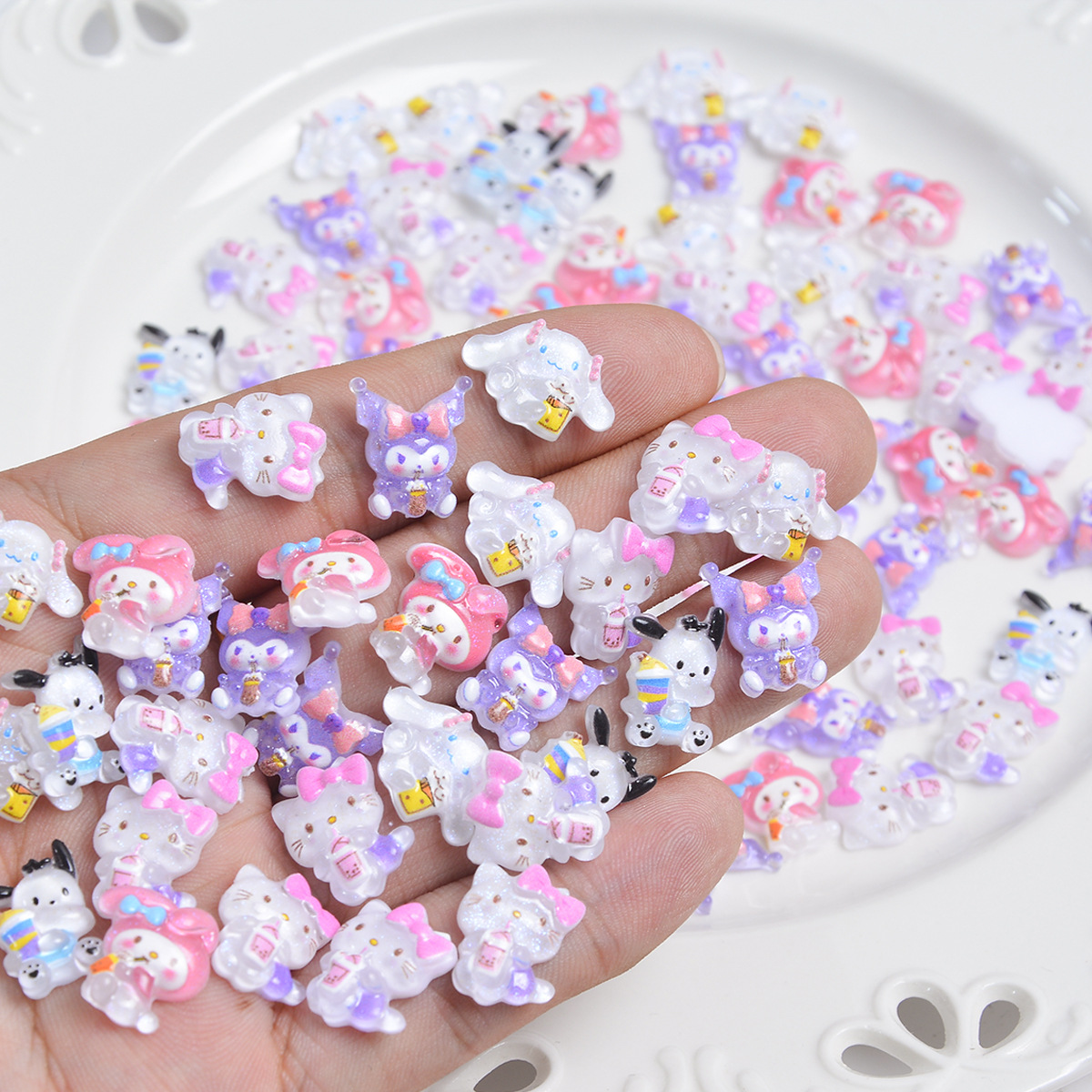 奶茶美甲饰品三丽鸥系列可爱卡通树脂冰淇淋蛋糕库洛米KT猫帕恰狗 English | 投诉