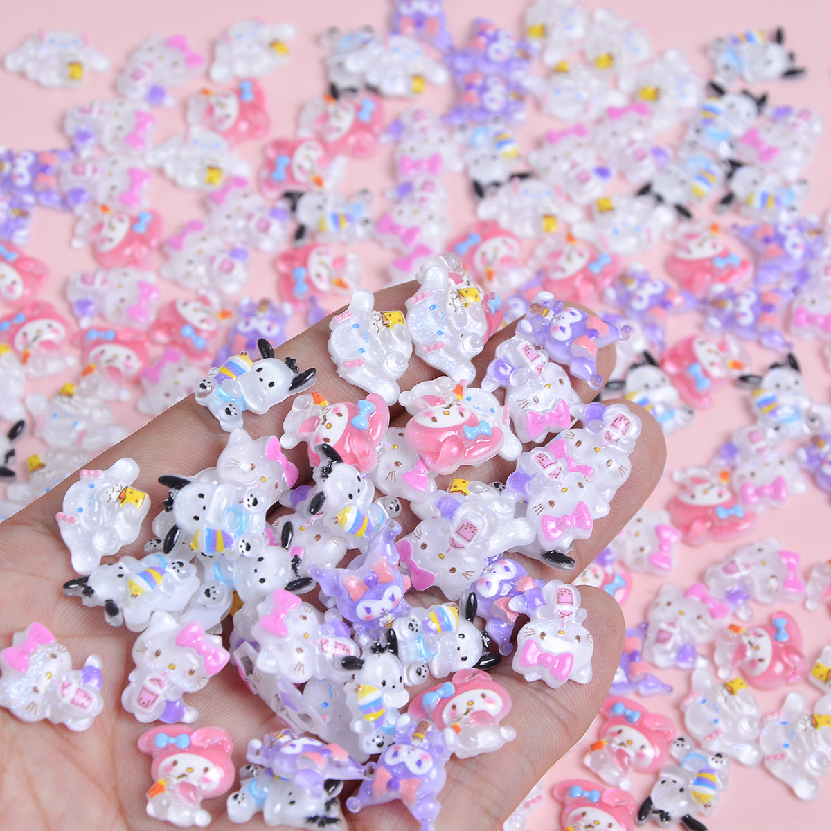 奶茶美甲饰品三丽鸥系列可爱卡通树脂冰淇淋蛋糕库洛米KT猫帕恰狗