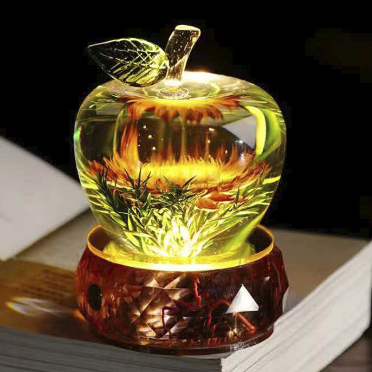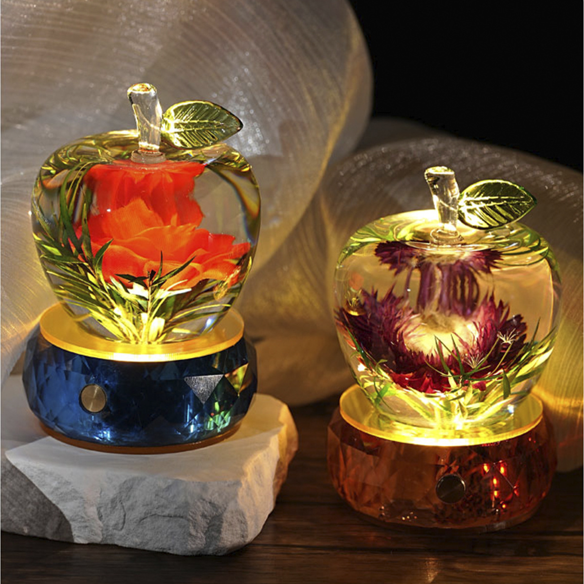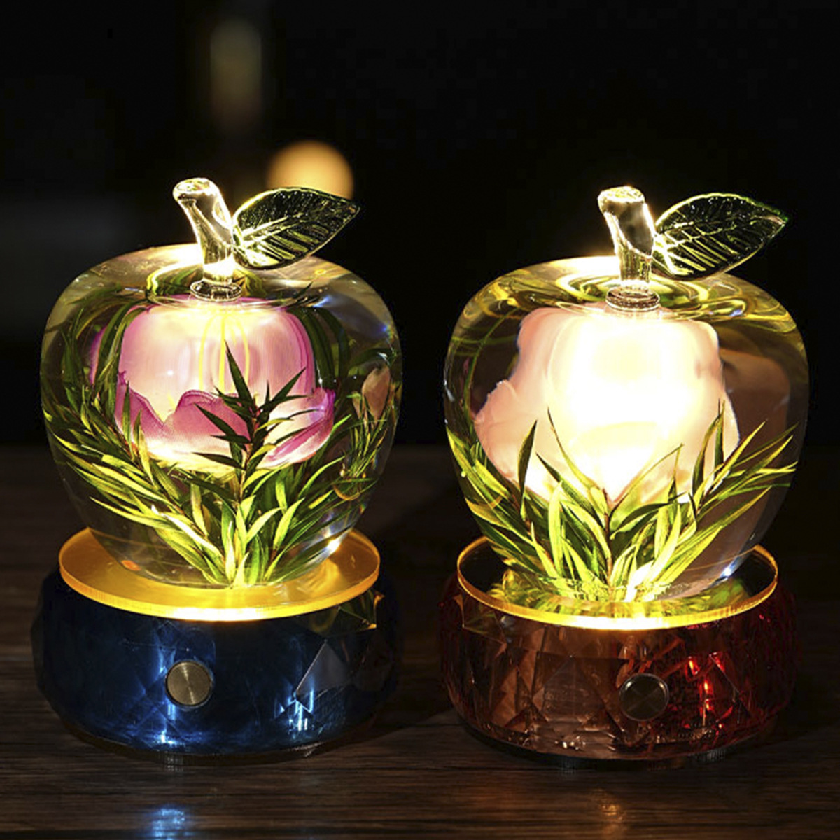 圣诞平安夜苹果摆件发光苹果装饰玻璃水晶晶苹果创意家居彩色礼物 English | 投诉