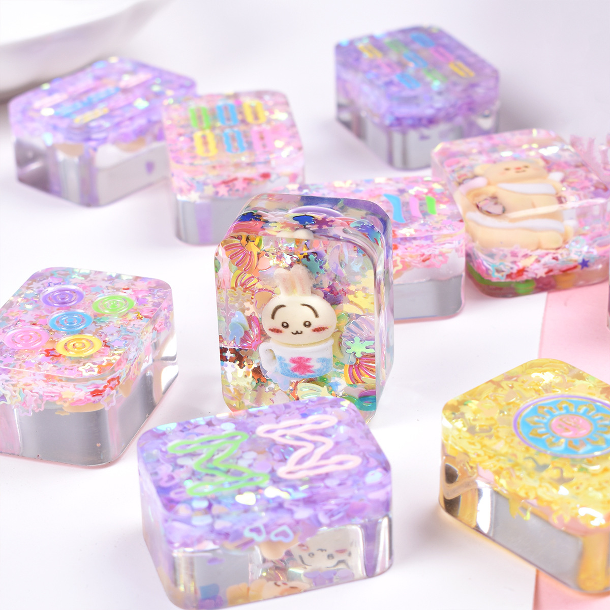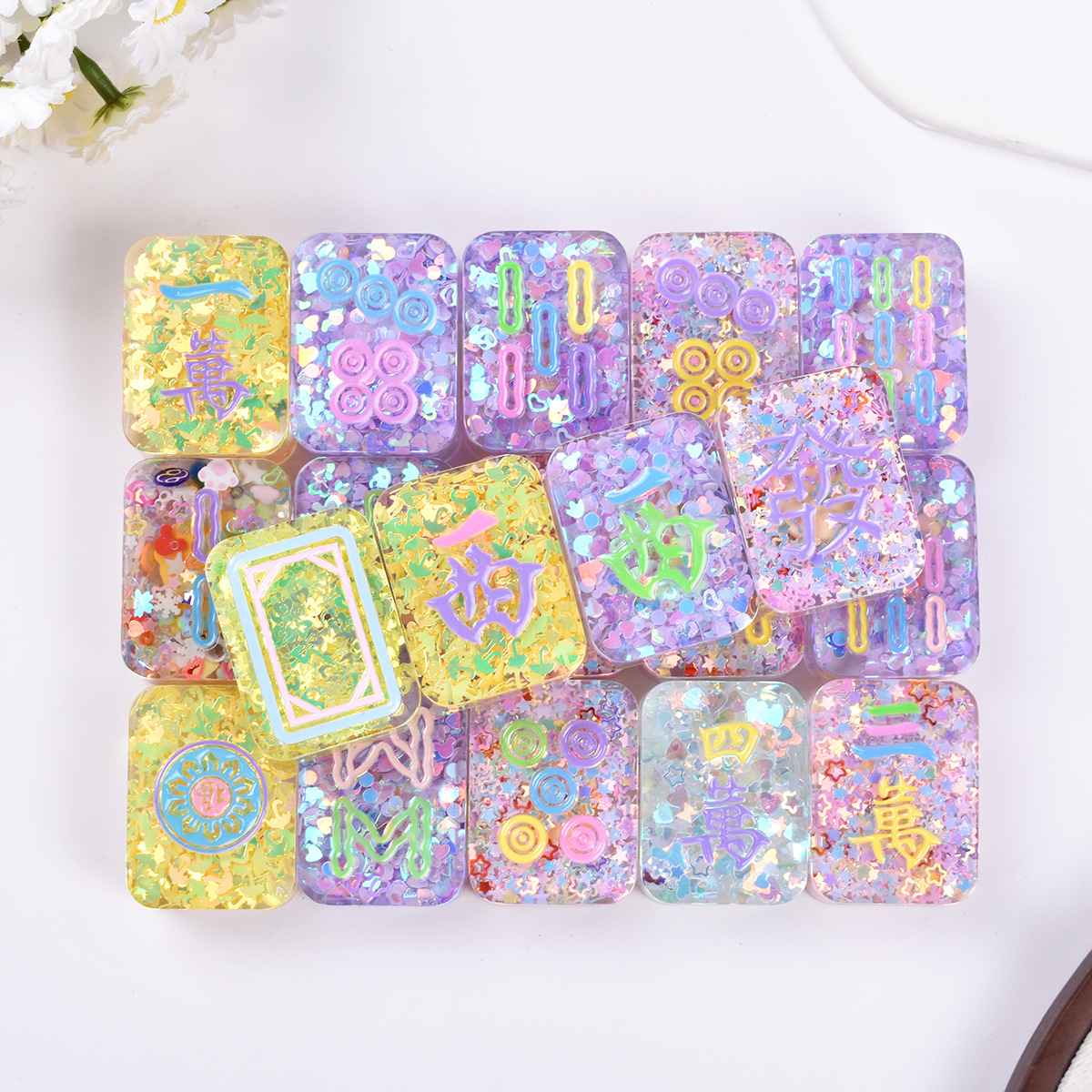 抖音直播拆盲盒盲袋个性潮流公仔卡通麻将DIY滴胶爆闪小麻将人鱼