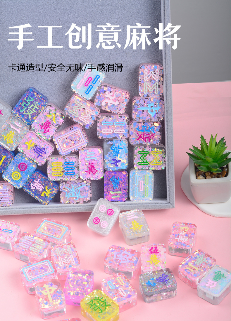亮片盲盒盲袋爆款滴胶麻将人鱼手工直播间网红同款爆款DIY小麻将 English | 投诉