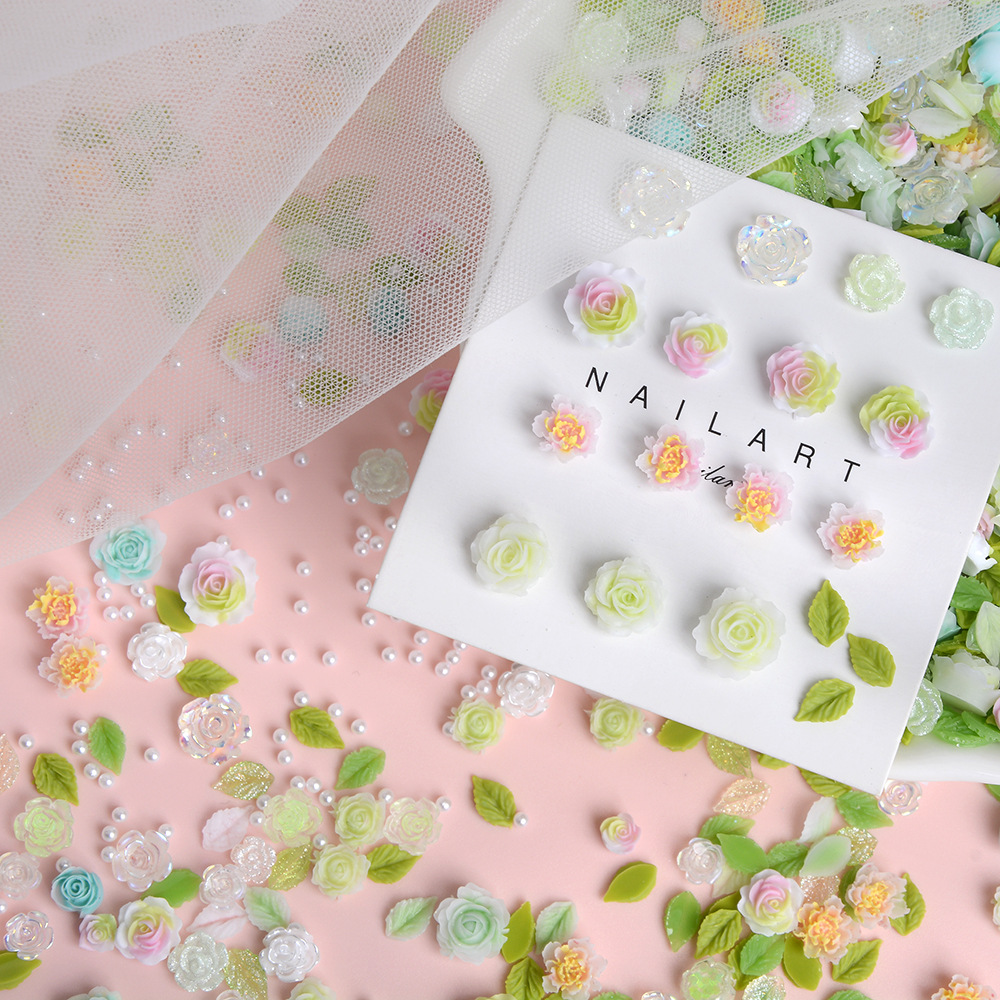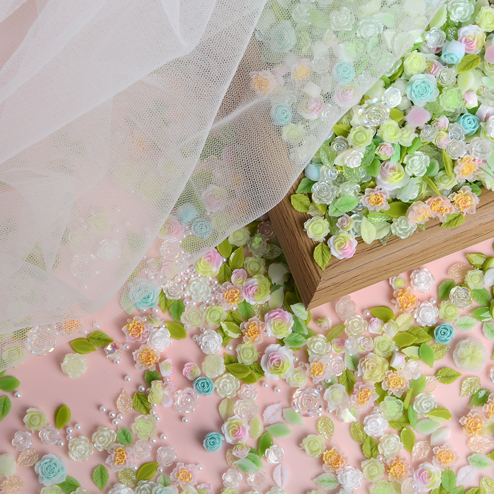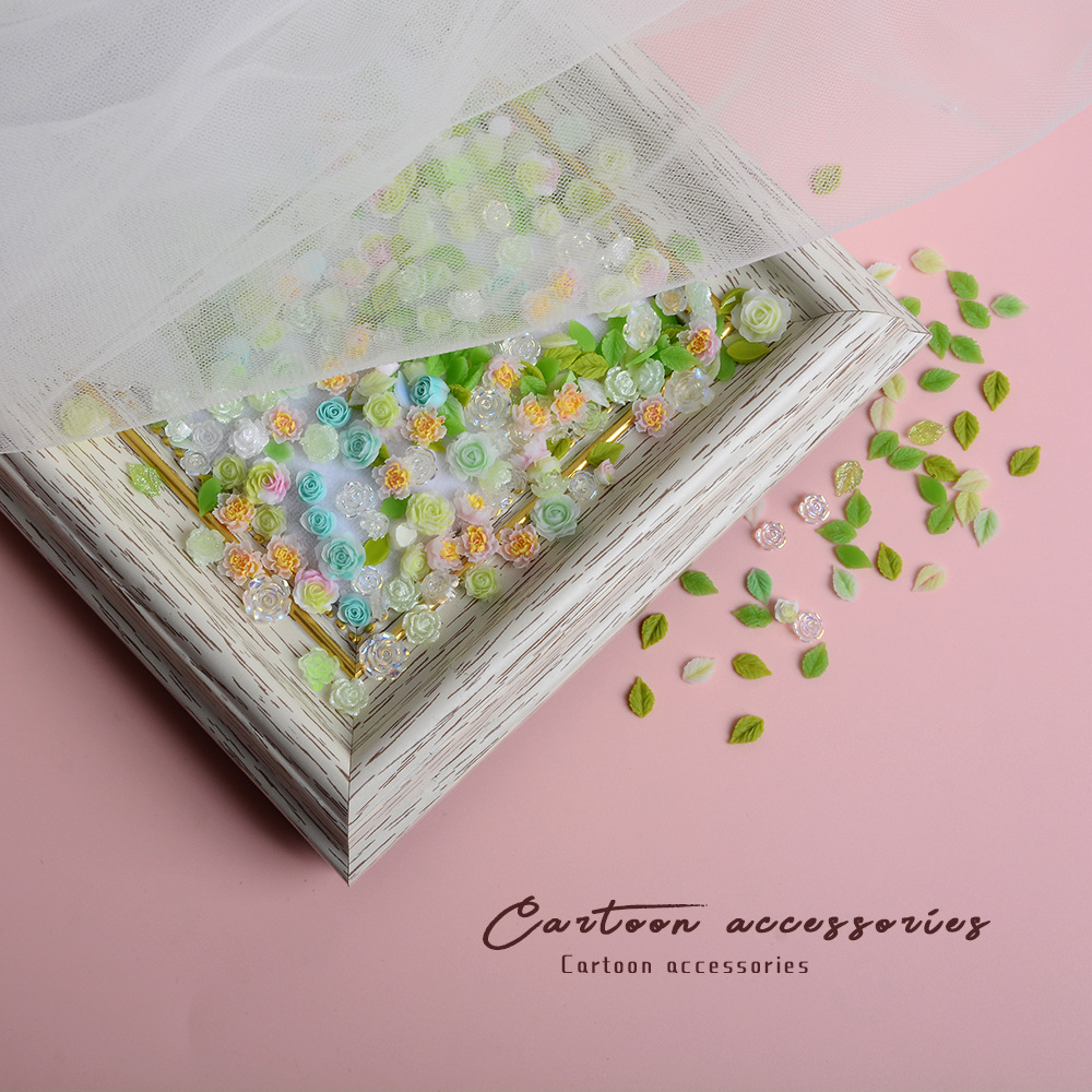 美甲饰品混装彩色绿色山茶花树脂配饰玫瑰花混款装饰用品素材批发 English | 投诉