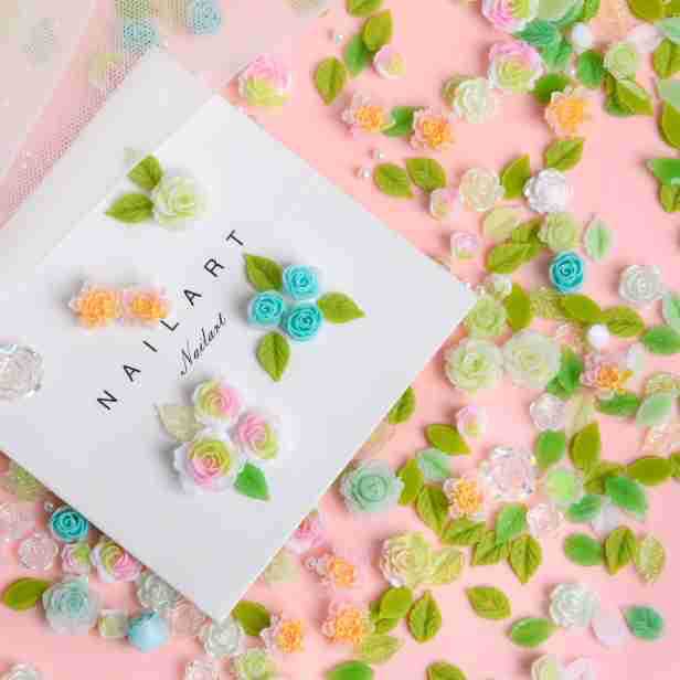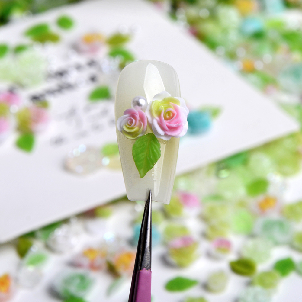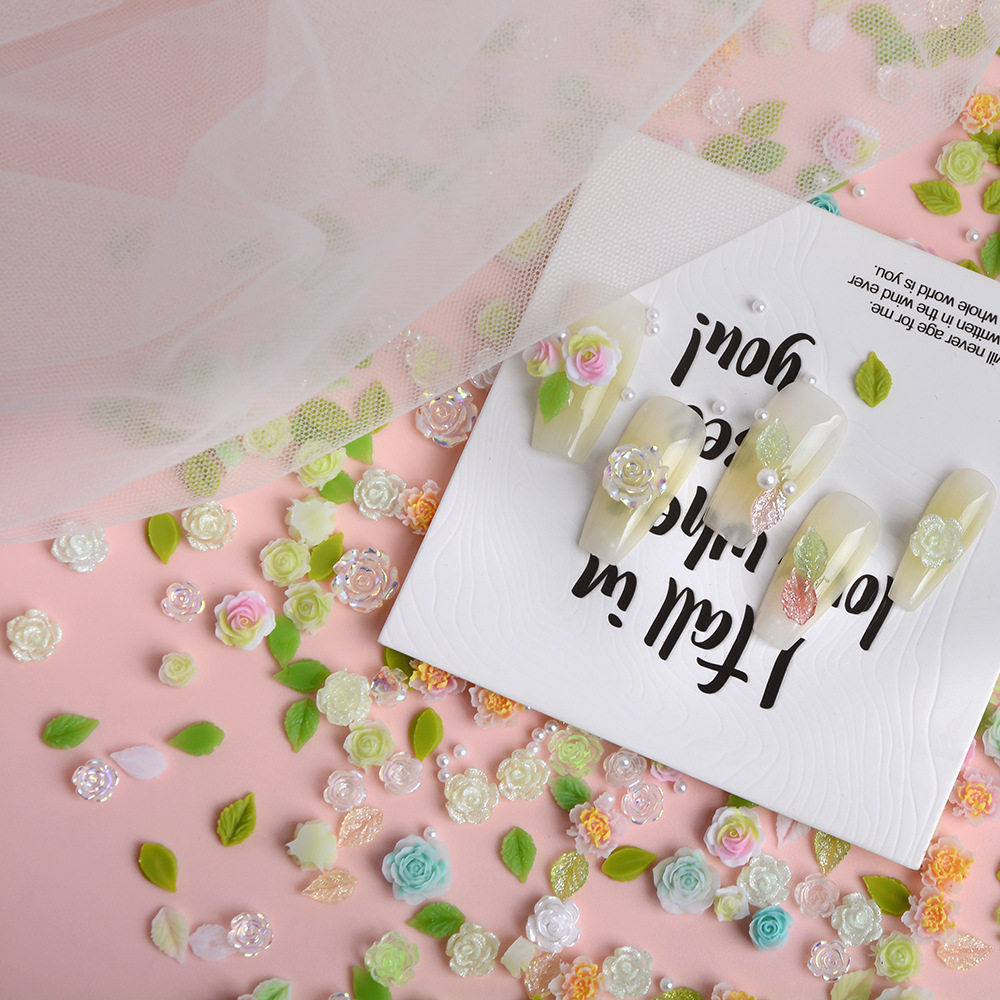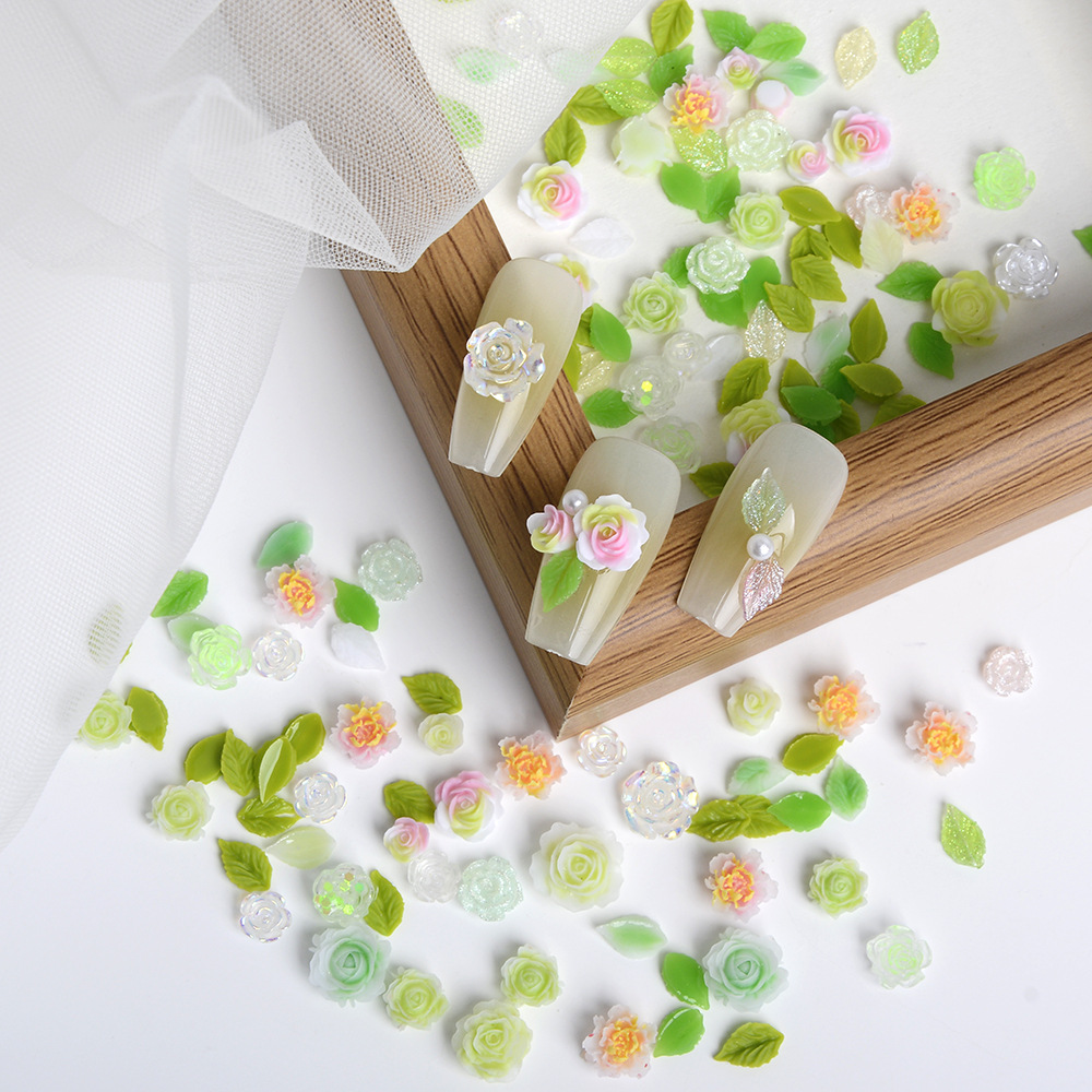 美甲饰品混装彩色绿色山茶花树脂配饰玫瑰花混款装饰用品素材批发 English | 投诉
