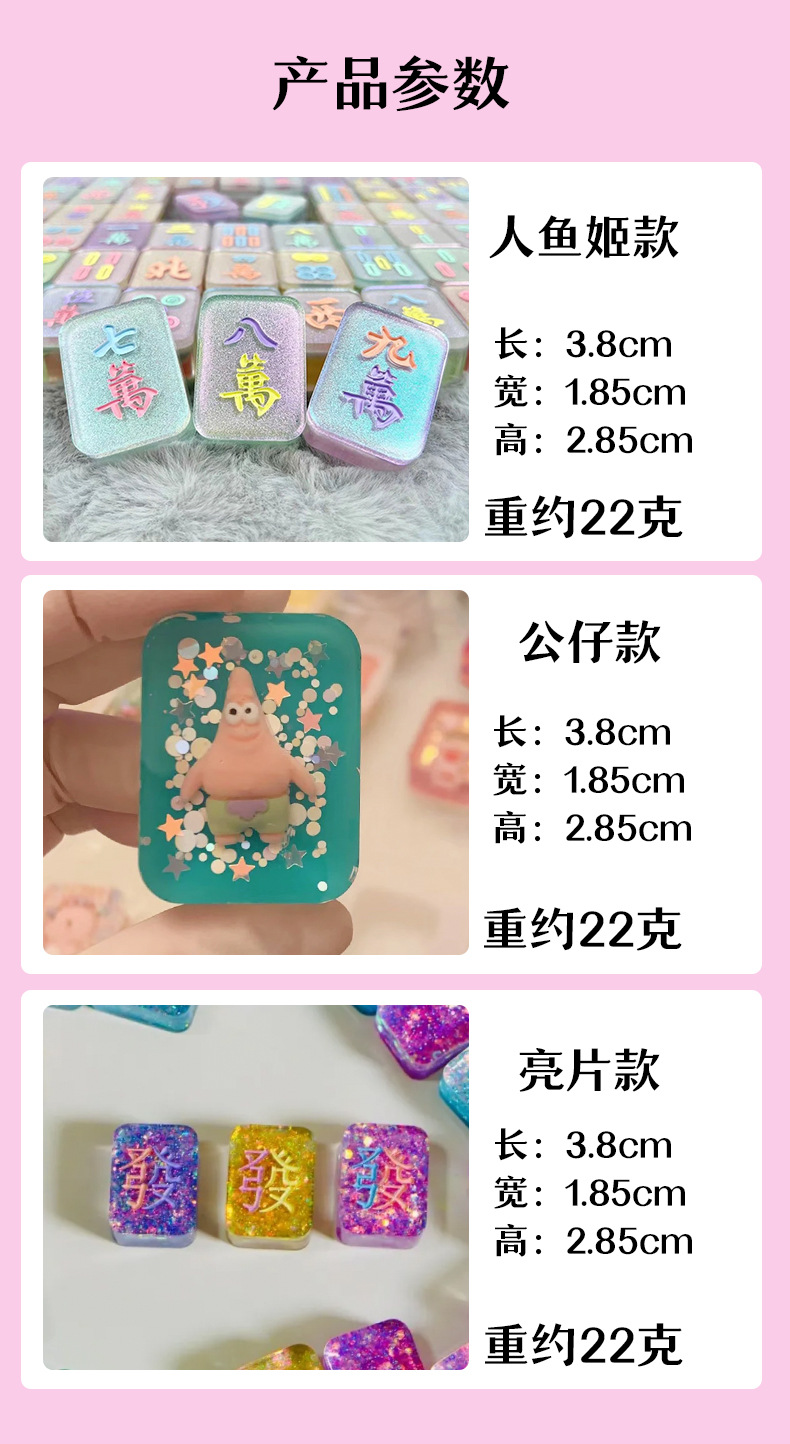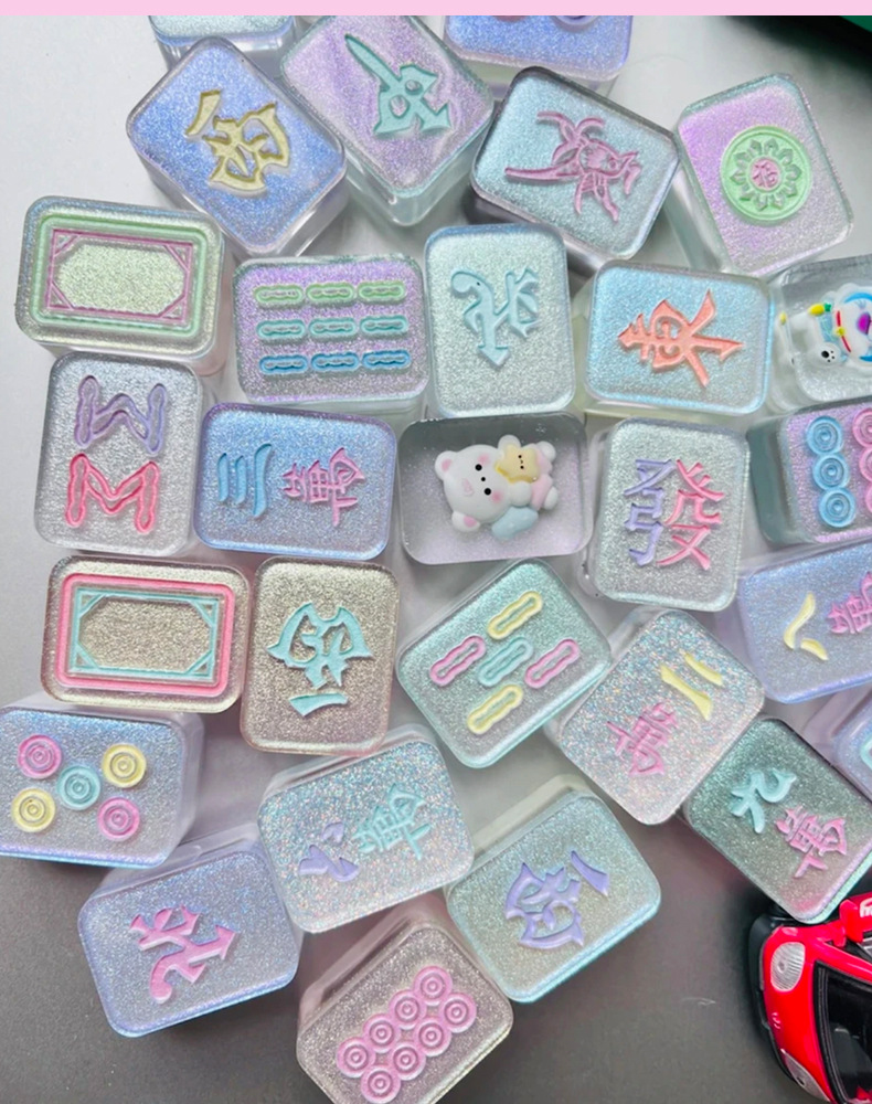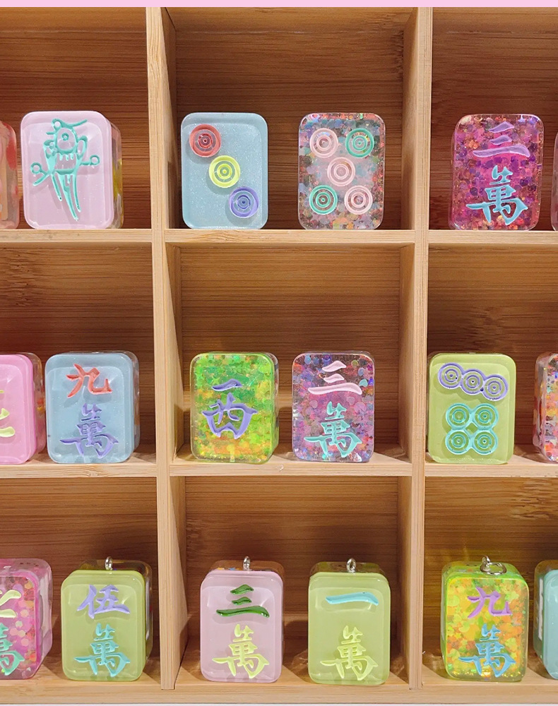 手工滴胶小麻将盲盒盲袋流沙抖音直播定制卡通亚克力迷你夜光透明 English | 投诉