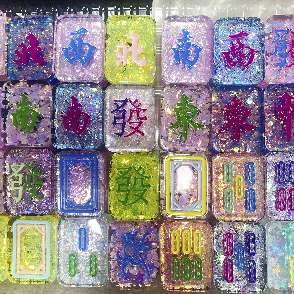 手工滴胶小麻将盲盒盲袋流沙抖音直播定制卡通亚克力迷你夜光透明