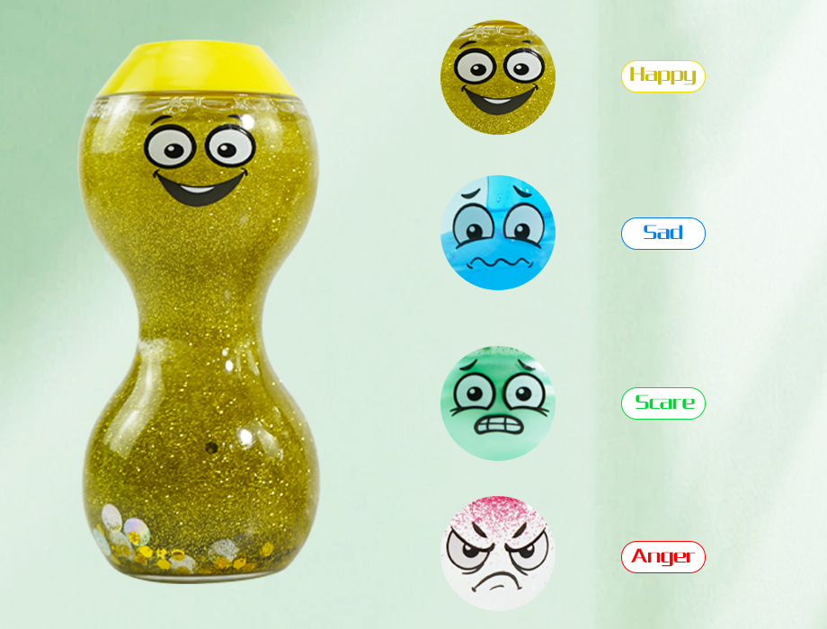 为孩子们提供安静、自主、的方式来识别他们的感受,释放这些感受产生的能量并平静下来。每个瓶子都具有独特的情绪、颜色和互动元素,与四种情绪中的一种相关——快乐、愤怒、害怕和悲伤。