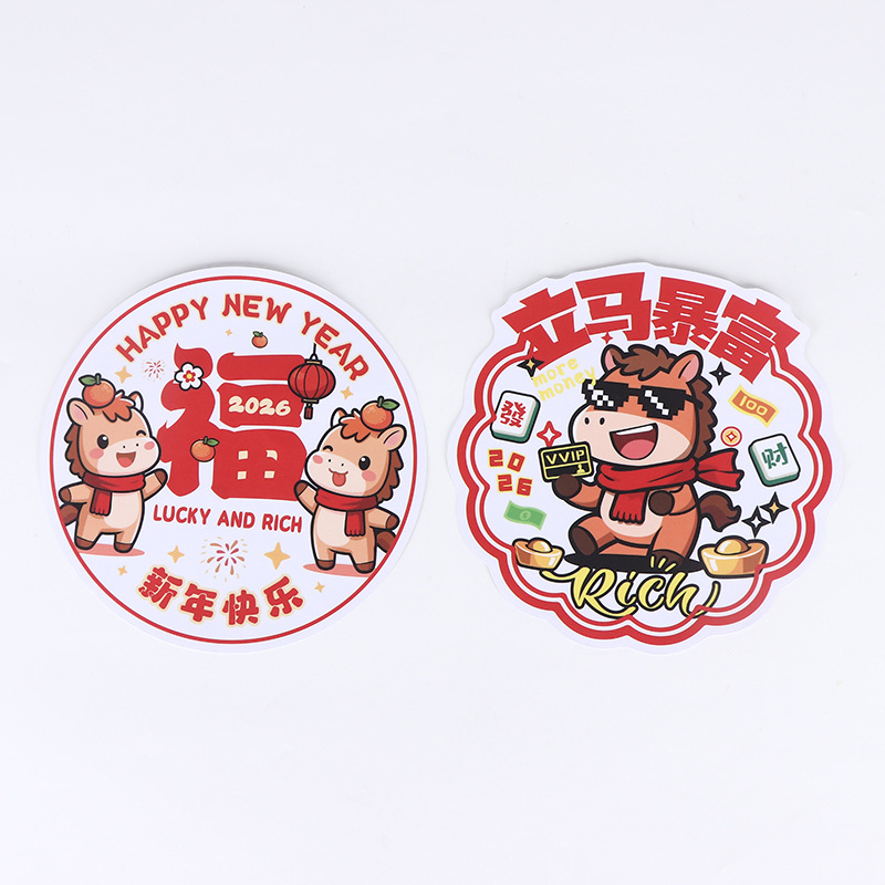新年窗花剪纸玻璃窗贴2026年新款马年生肖福字静电贴窗户门静电贴 投诉