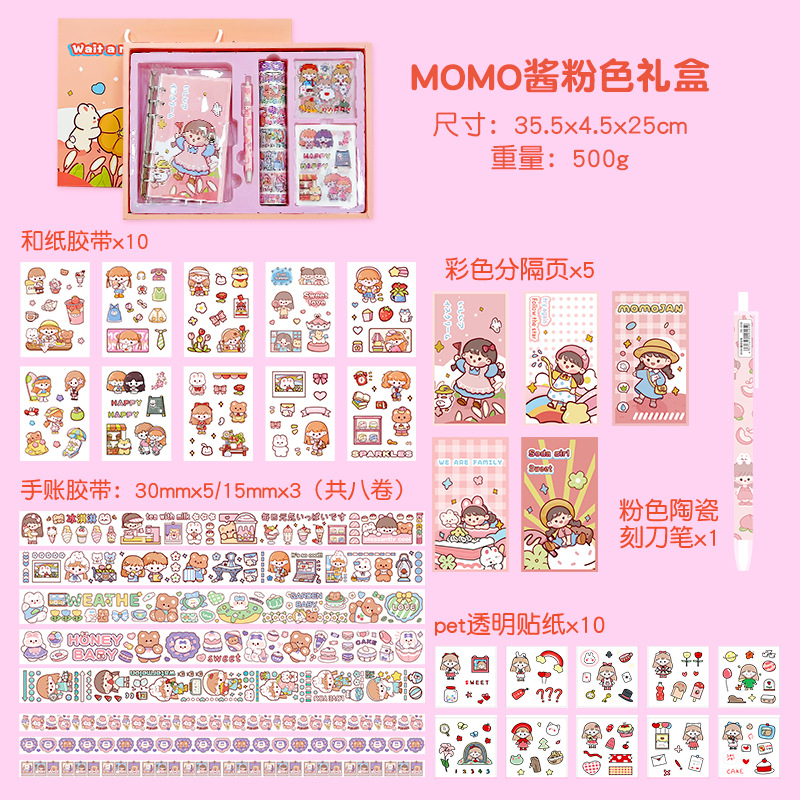 MOMO酱卡通手帐贴纸套装PET防水贴纸可爱礼盒水杯贴画装饰粘贴纸