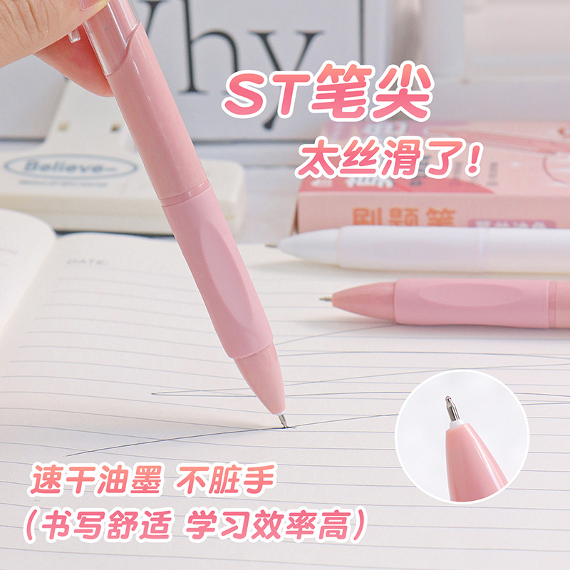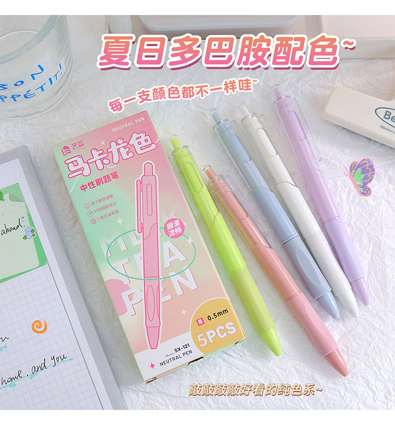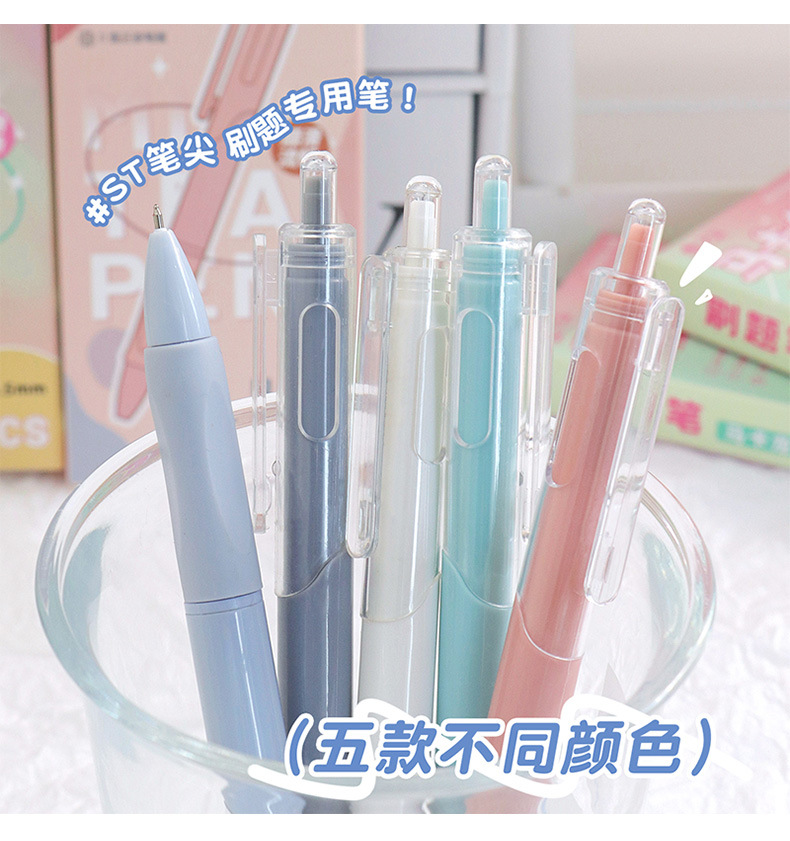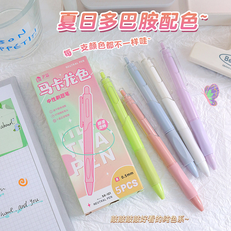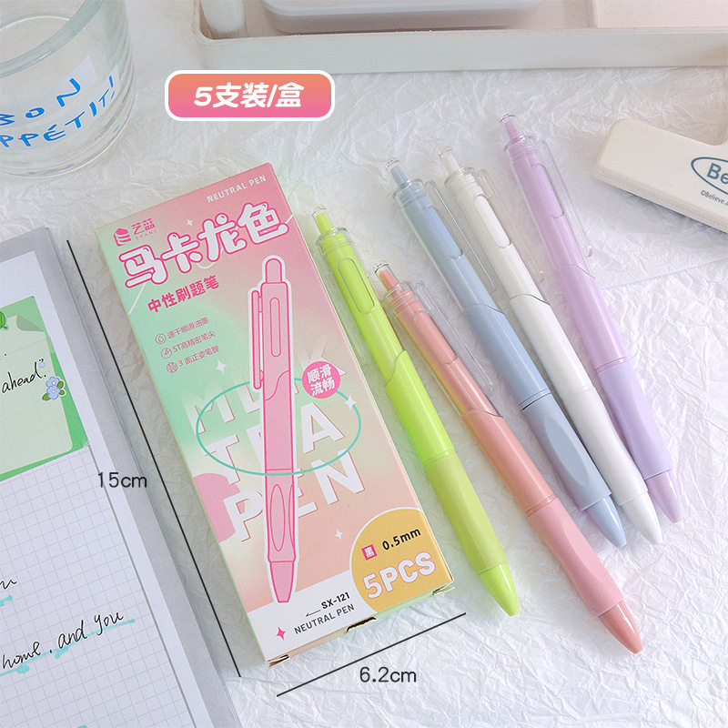 ins风马卡龙中性笔学生黑色按动笔ST笔头刷题笔高颜值速干笔批发