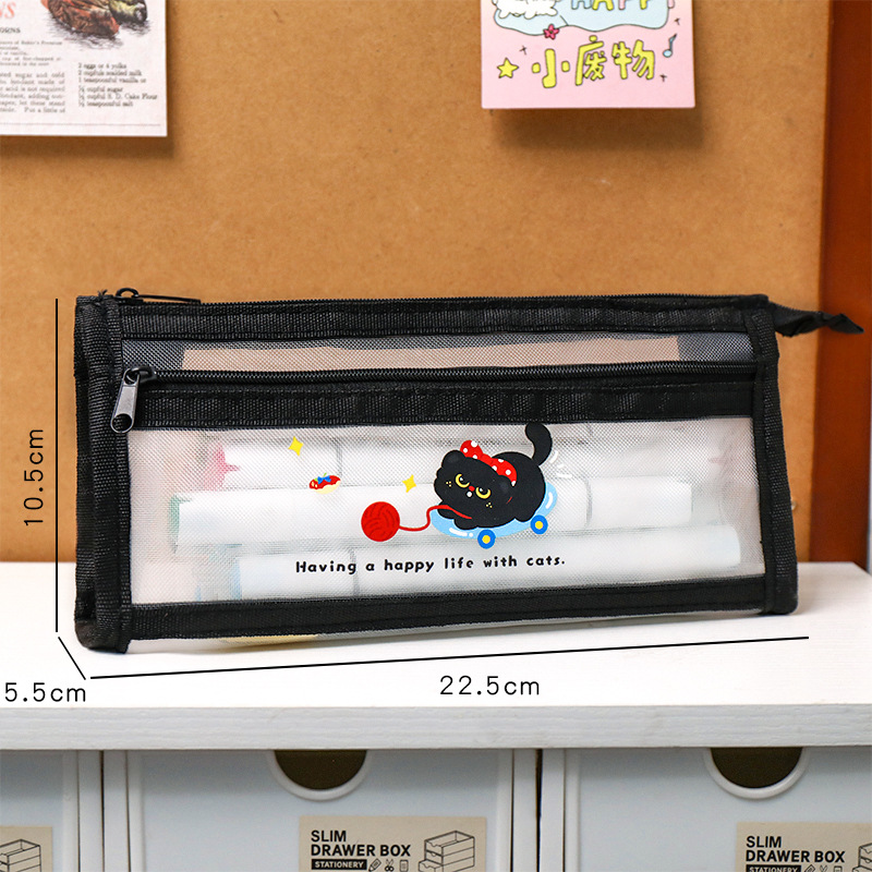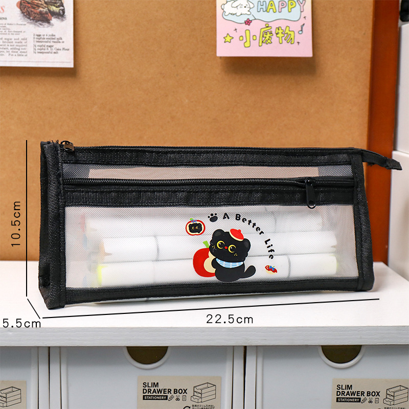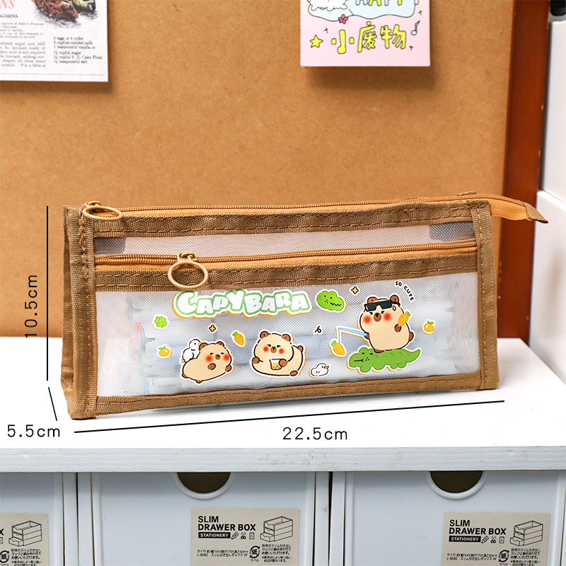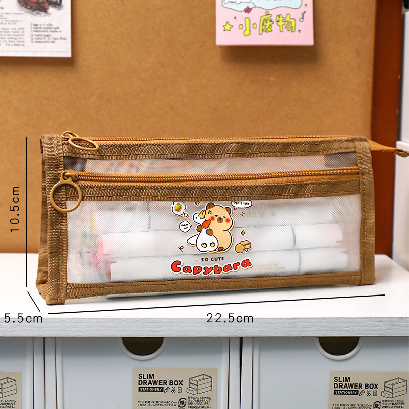 卡皮巴拉网纱笔袋学生卡通大容量文具袋双层铅笔袋可爱文具收纳袋