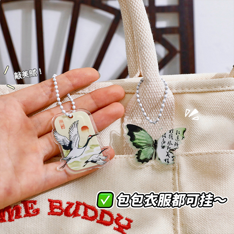 艺蓝古风蝴蝶钥匙扣新中式复古国风钥匙圈创意包包笔袋装饰挂件
