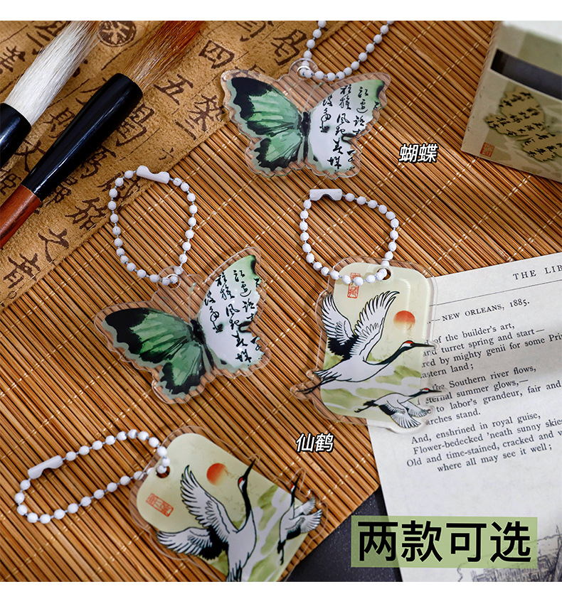 艺蓝古风蝴蝶钥匙扣新中式复古国风钥匙圈创意包包笔袋装饰挂件 投诉