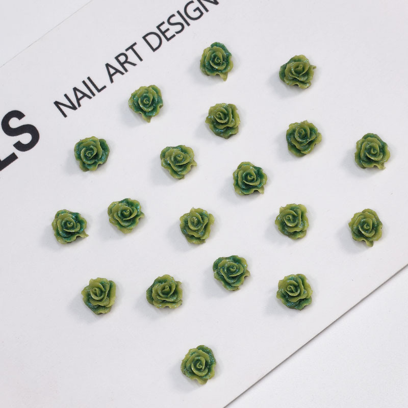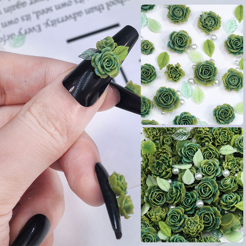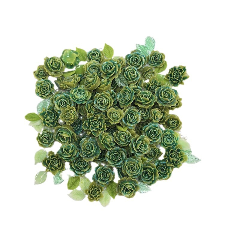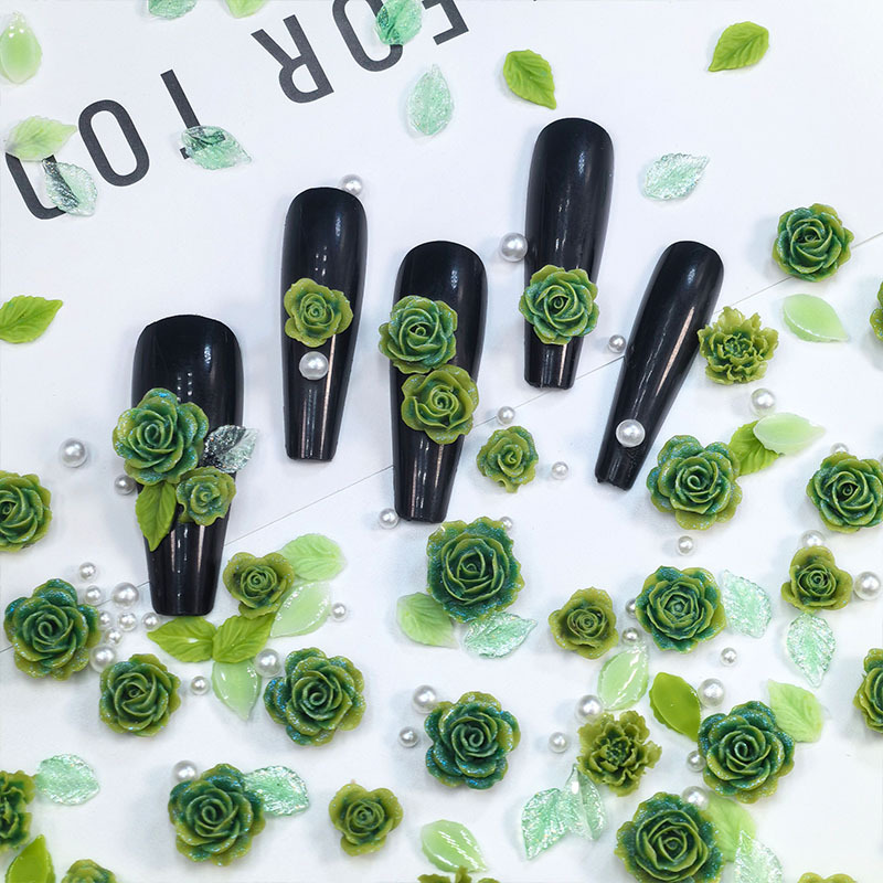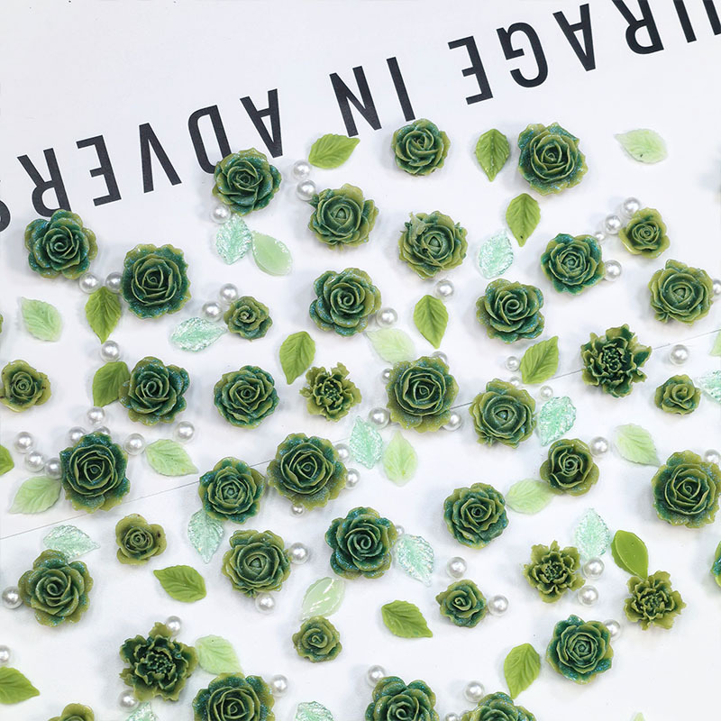 绿色玫瑰花朵珍珠绿叶美甲装饰指甲饰品配件diy发夹树脂混装材料 English | 投诉