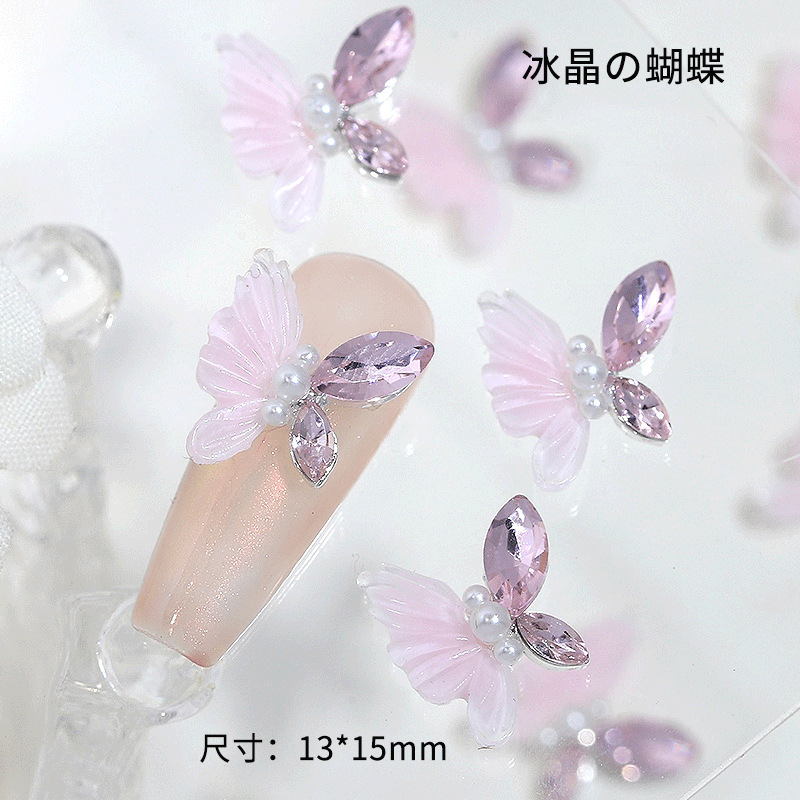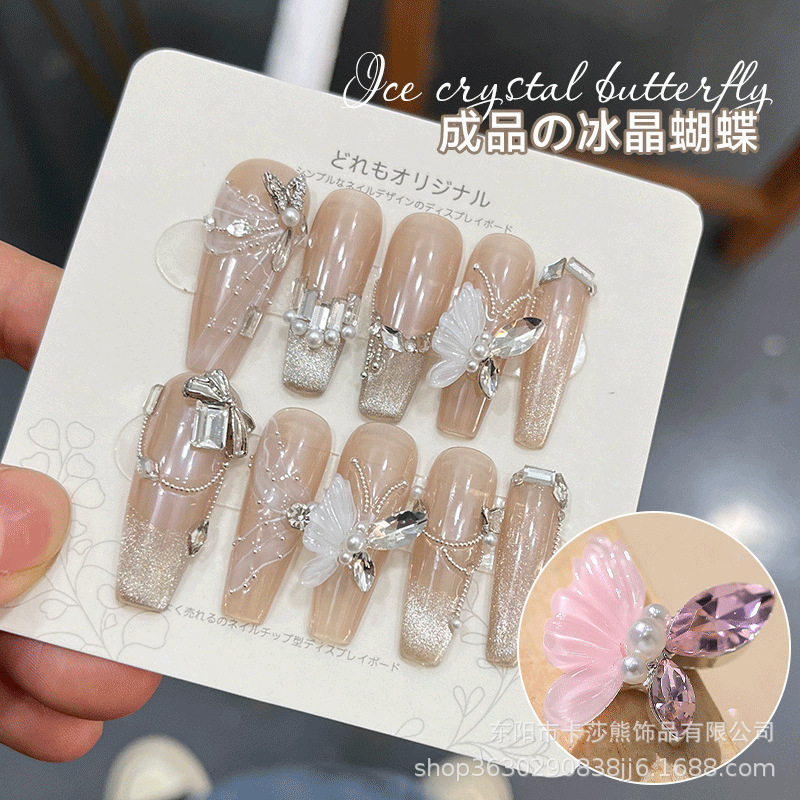 美甲冰晶蝴蝶成品网红爆款合金饰品手工镶马眼diy白粉穿戴甲配饰 English | 投诉