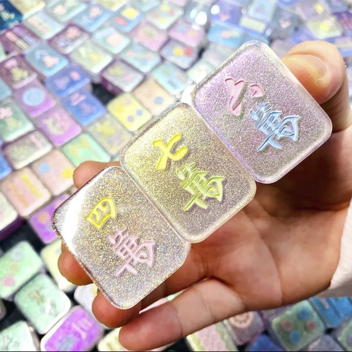 网红抖音爆款人鱼姬手工滴胶麻将盲盒盲袋水晶炫彩星空麻将批发 English | 投诉