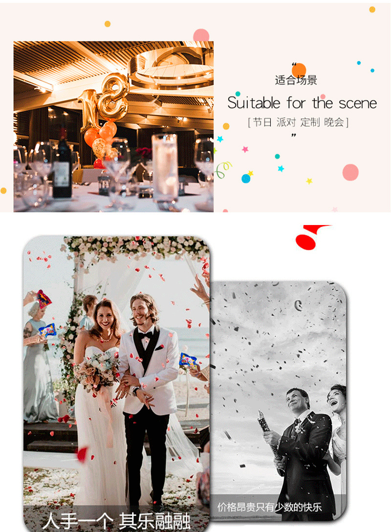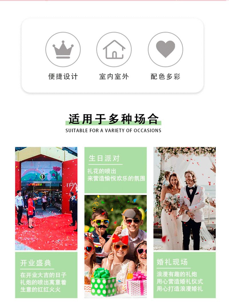出口节庆婚礼喷彩带气氛道具弹力小拉炮生日年会礼花筒喷彩带喷筒 English | 投诉