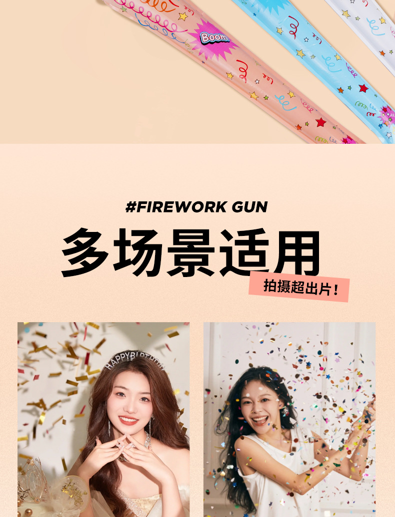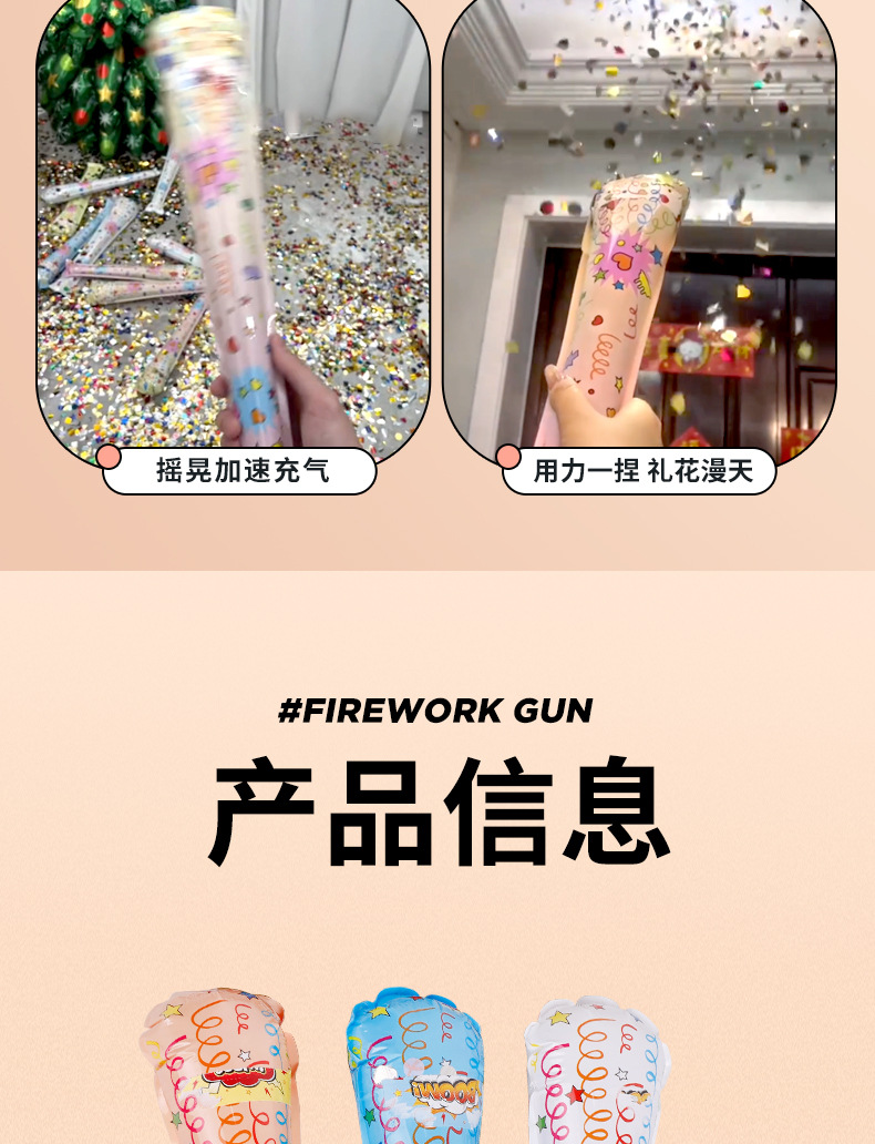 自动充气生日结婚跨年拍照气氛道具派对创意礼炮手持烟花枪 English | 投诉