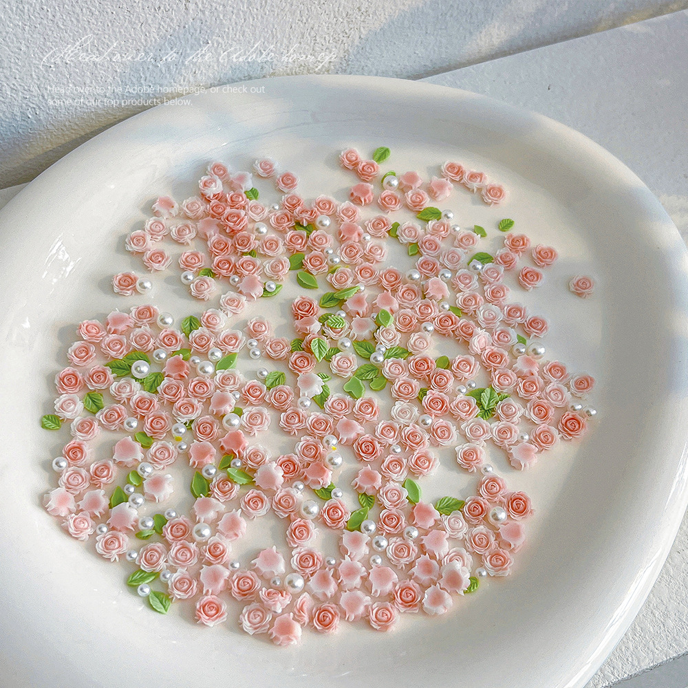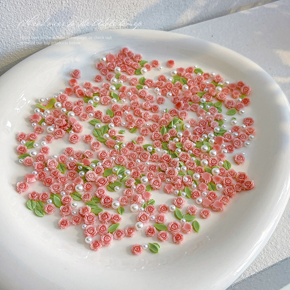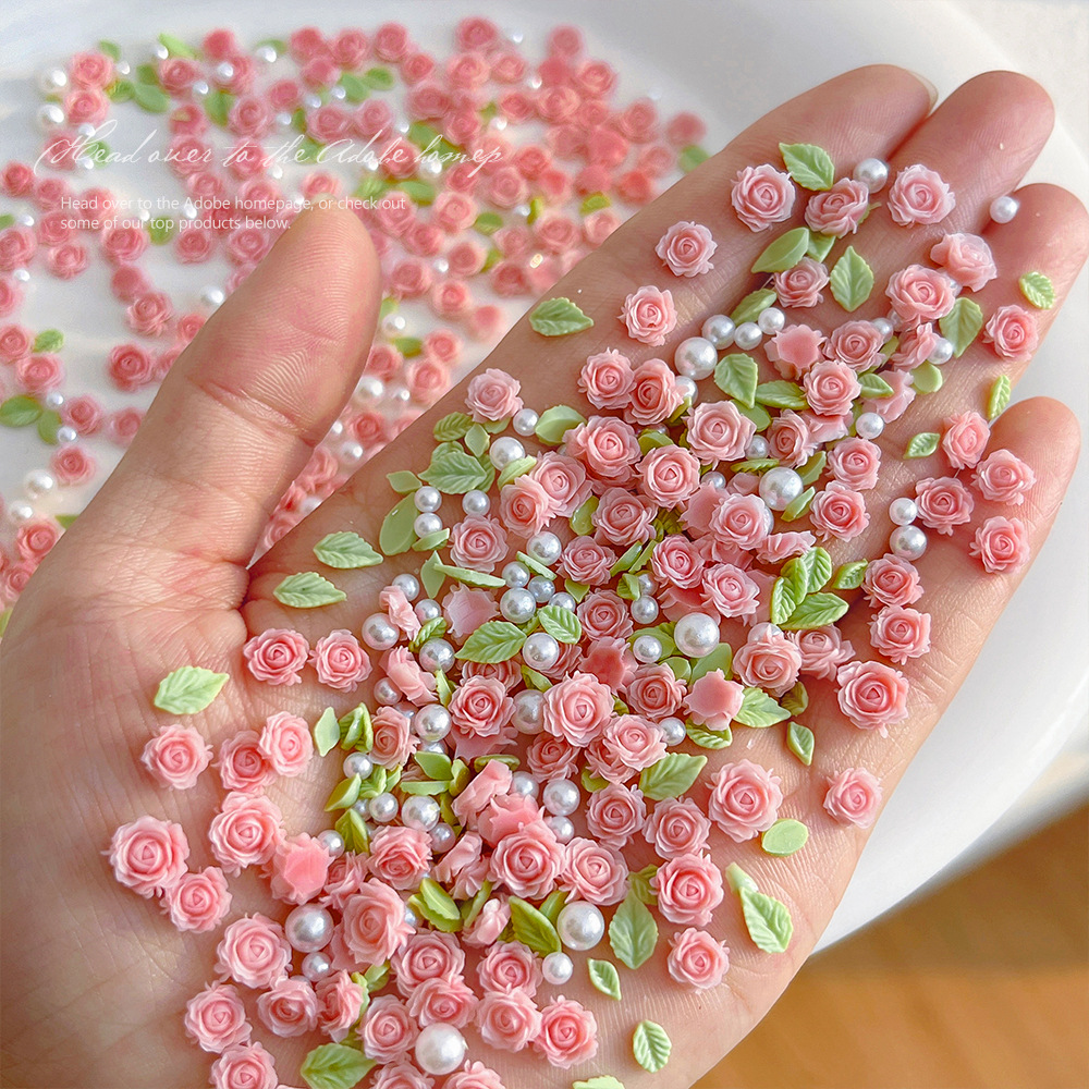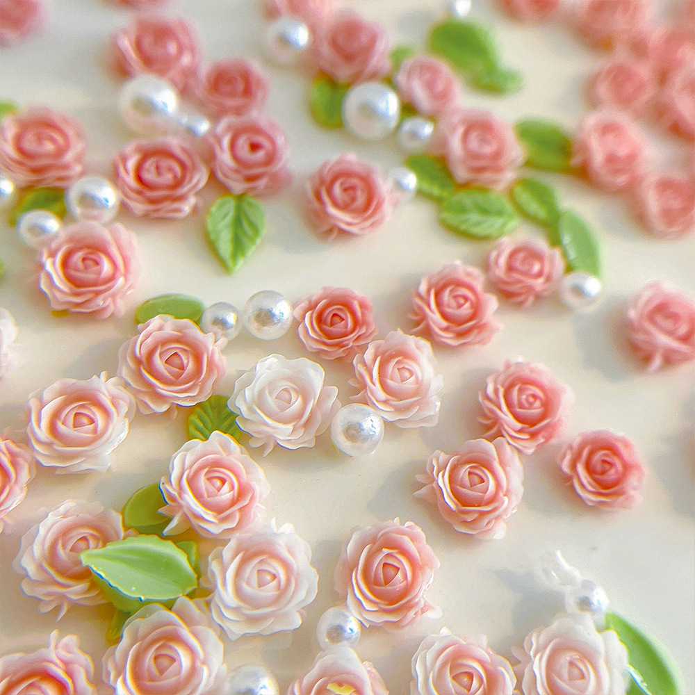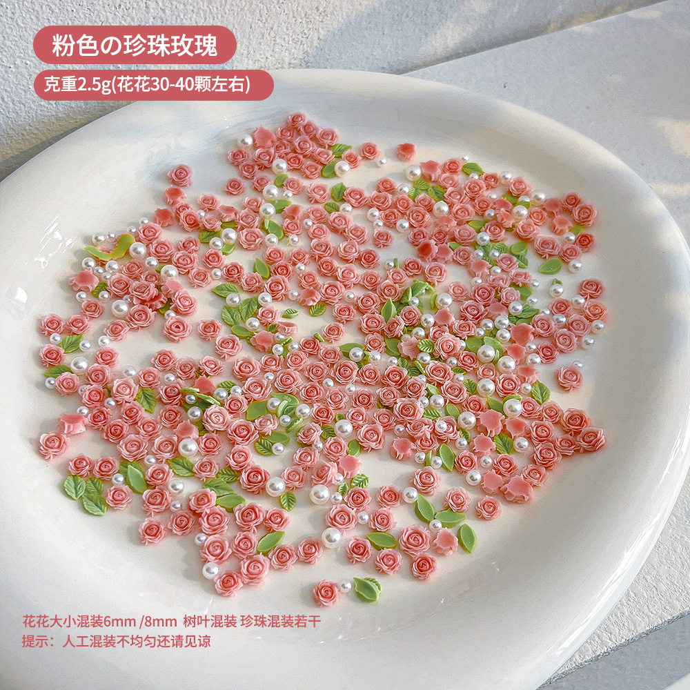 月季玫瑰花美甲饰品粉色立体花朵树脂珍珠混装指甲配饰批发山茶花 English | 投诉
