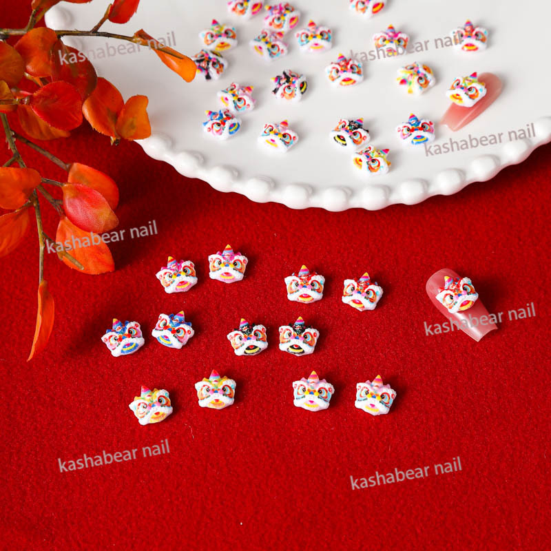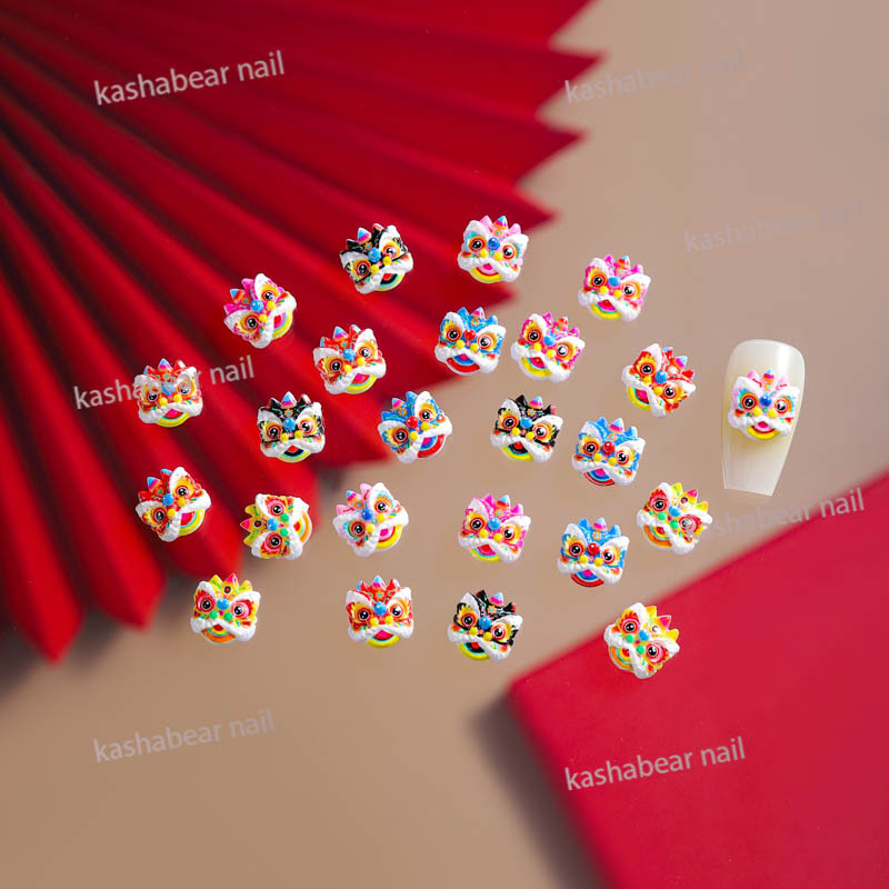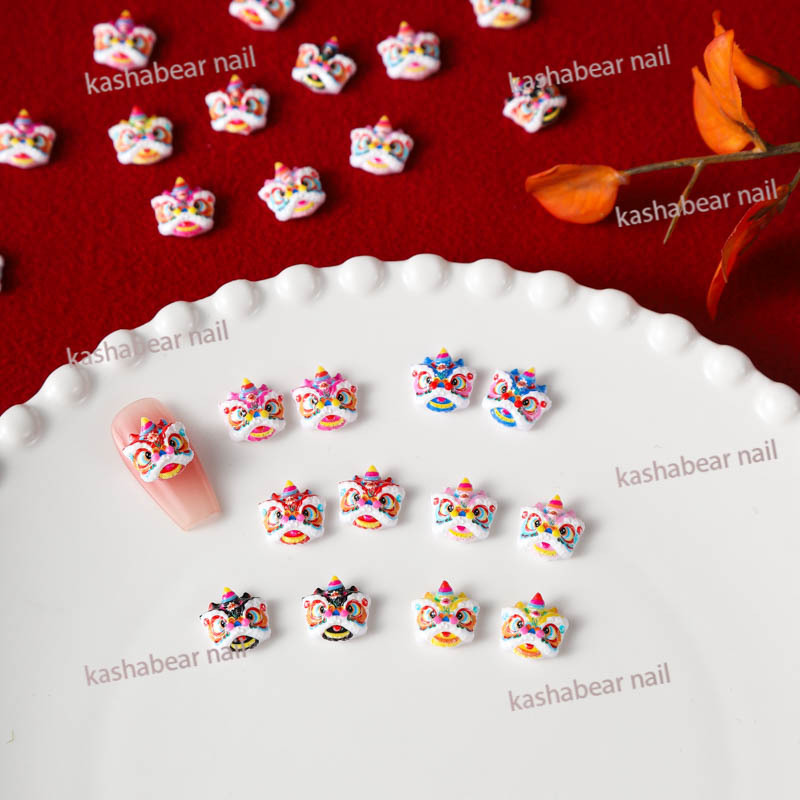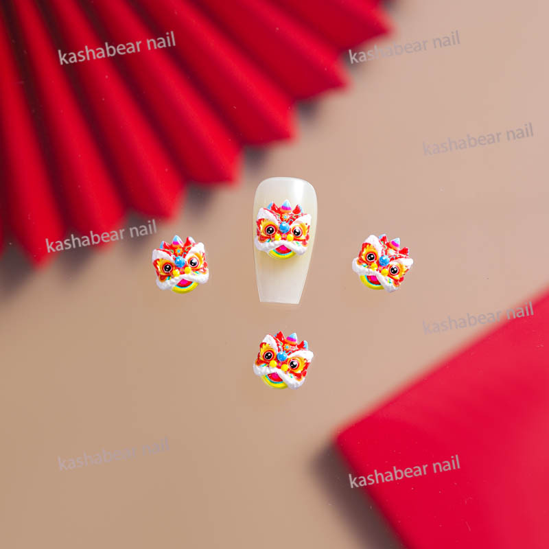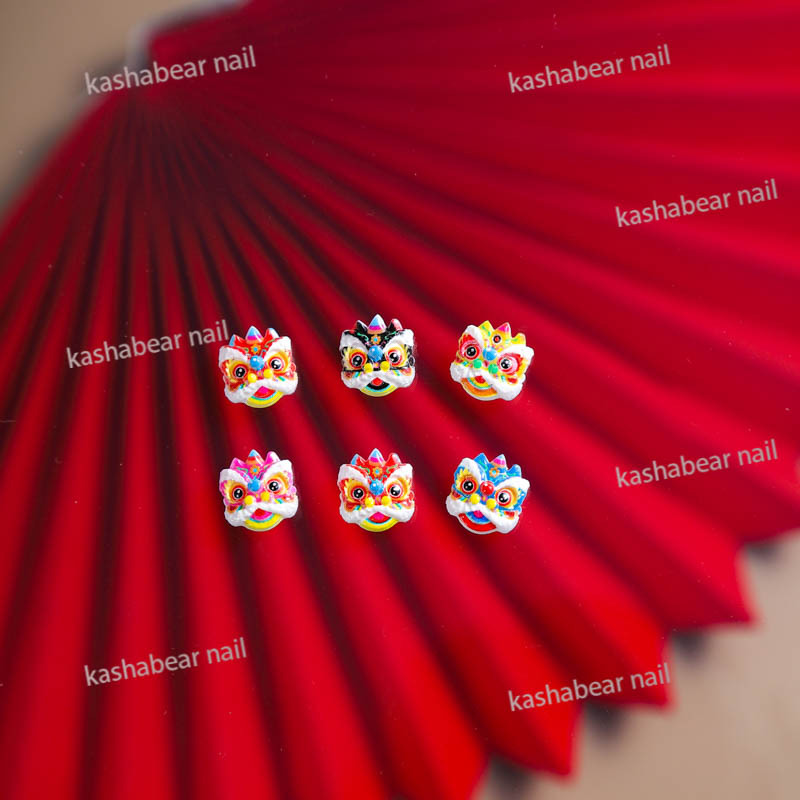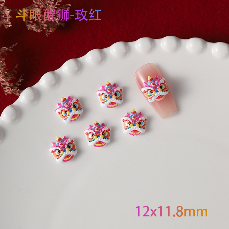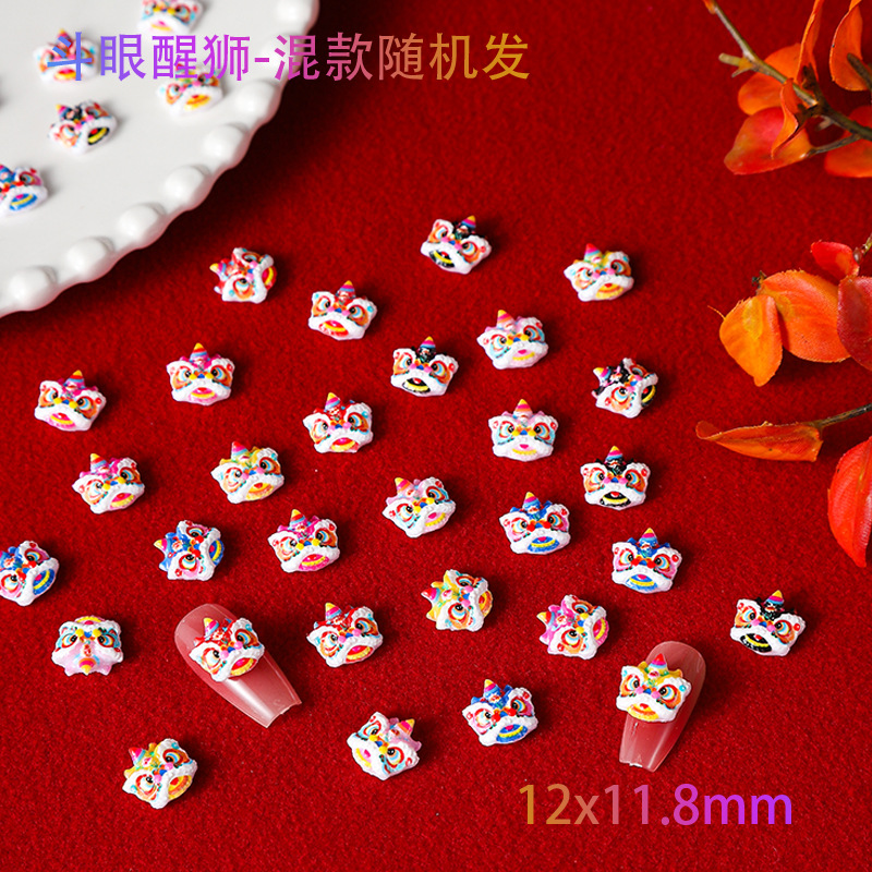 品名:国潮醒狮斗眼舞狮美甲饰品/瞪眼舞美甲饰品