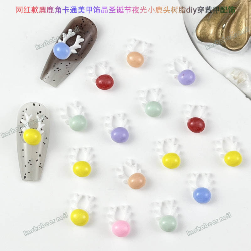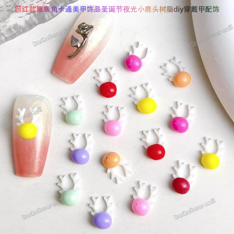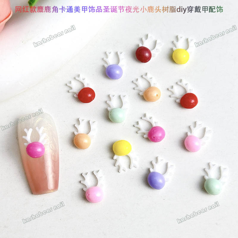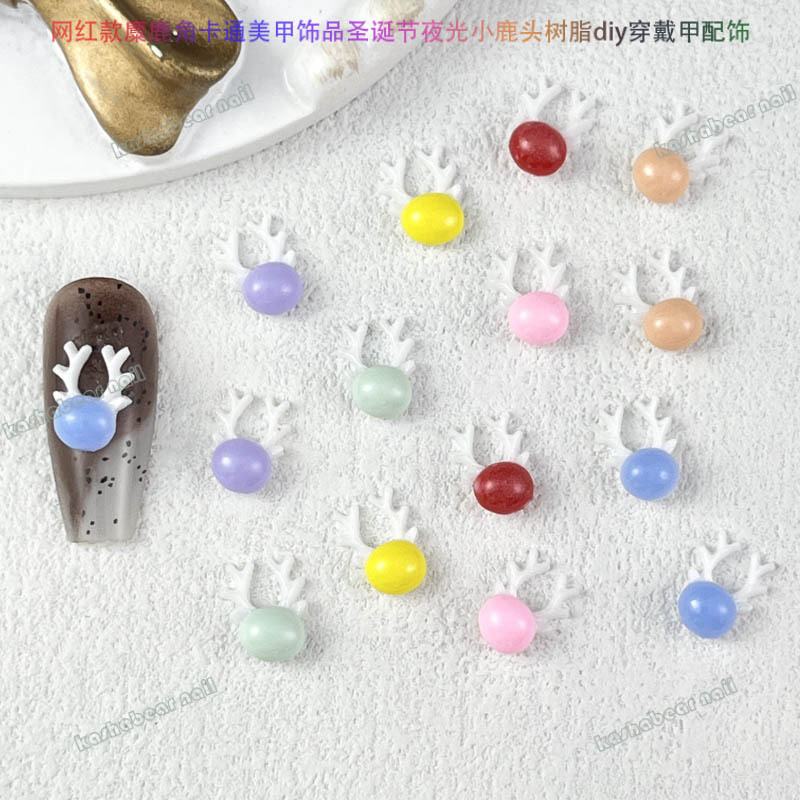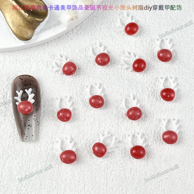 品名:新年款卡通夜光小麋鹿美甲饰品