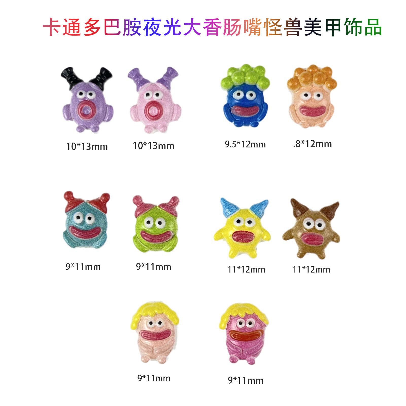 品名:卡通夜光多巴胺大嘴小怪兽美甲饰品