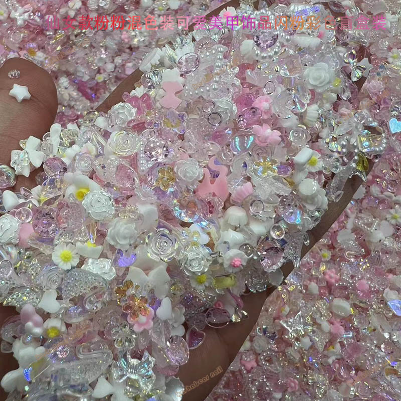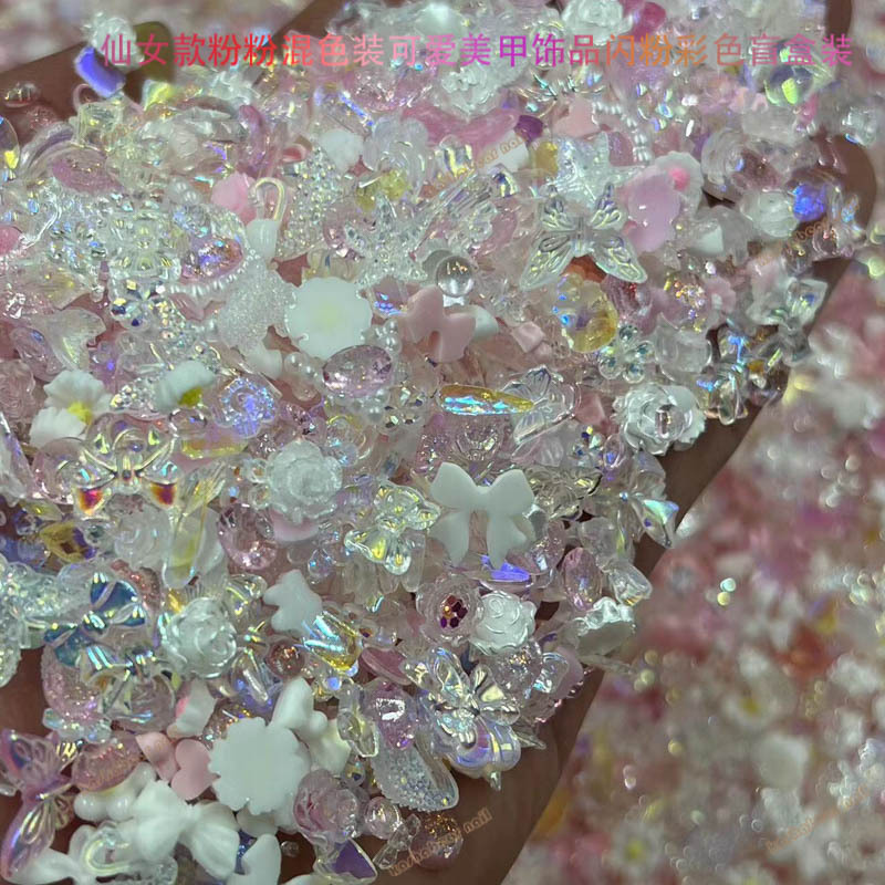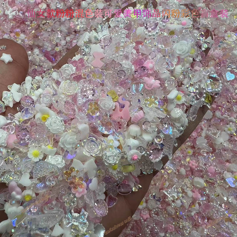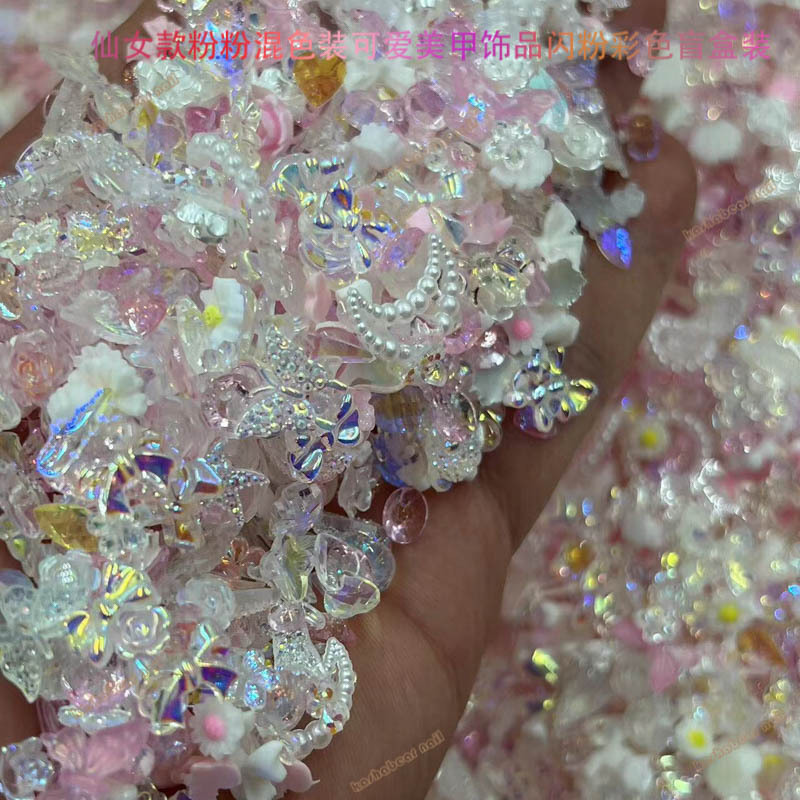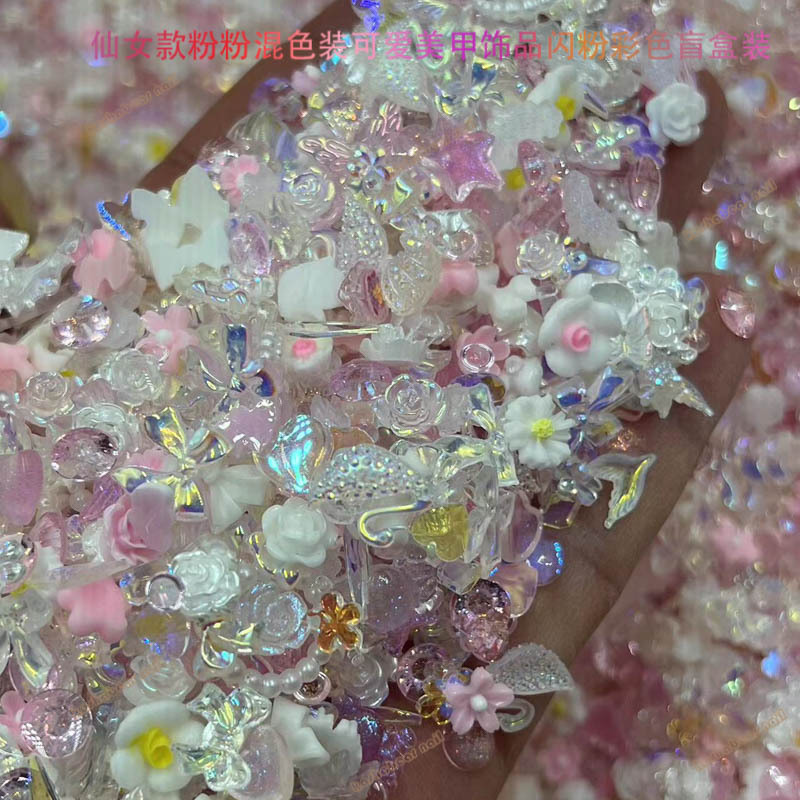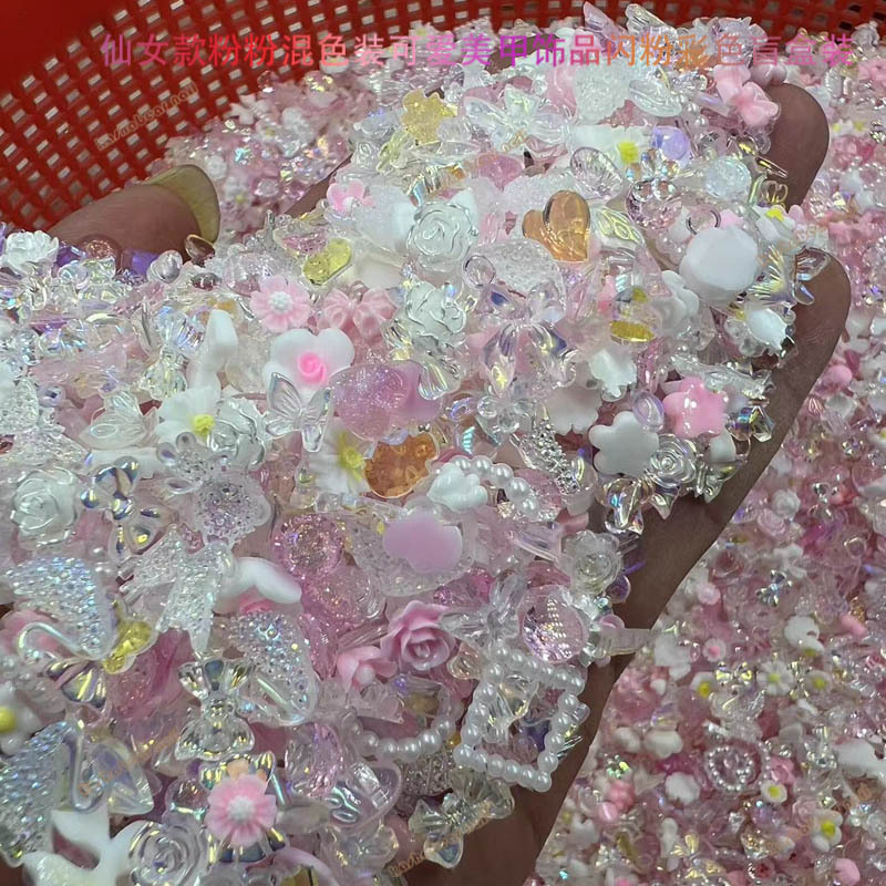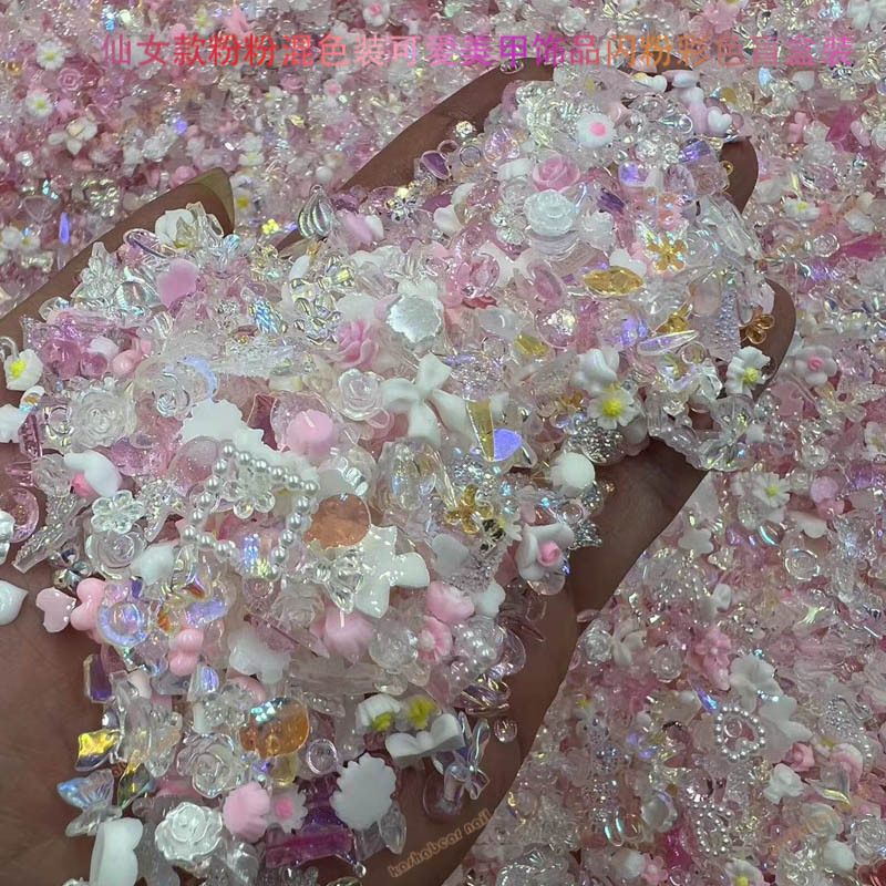 粉色仙女款粉粉极光透白春节款美甲饰品 混色装Diy饰品美甲店专用 English | 投诉