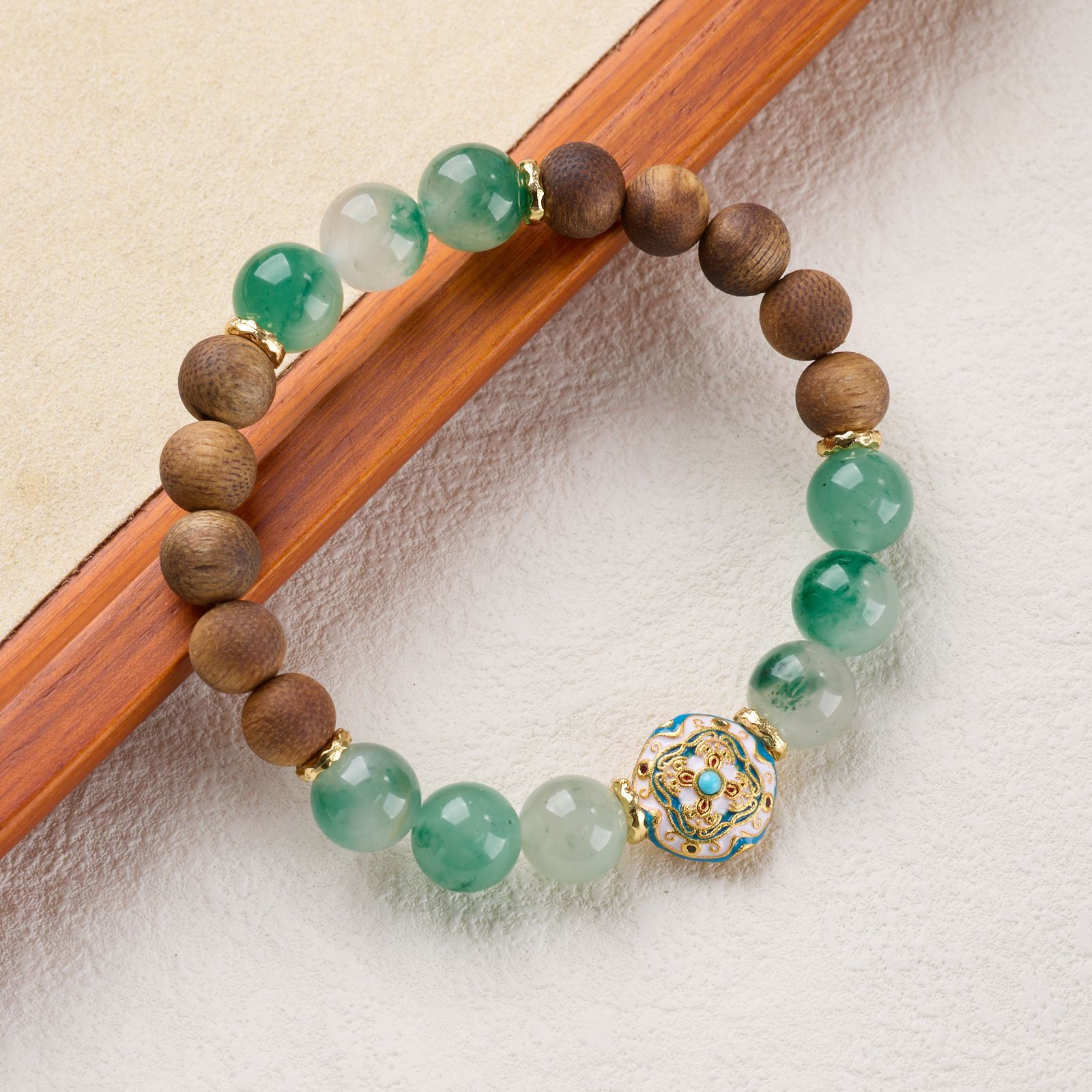 |名称|10MM非洲翠 奇楠沉香 珐琅宝相花路路通 盘缠 手链