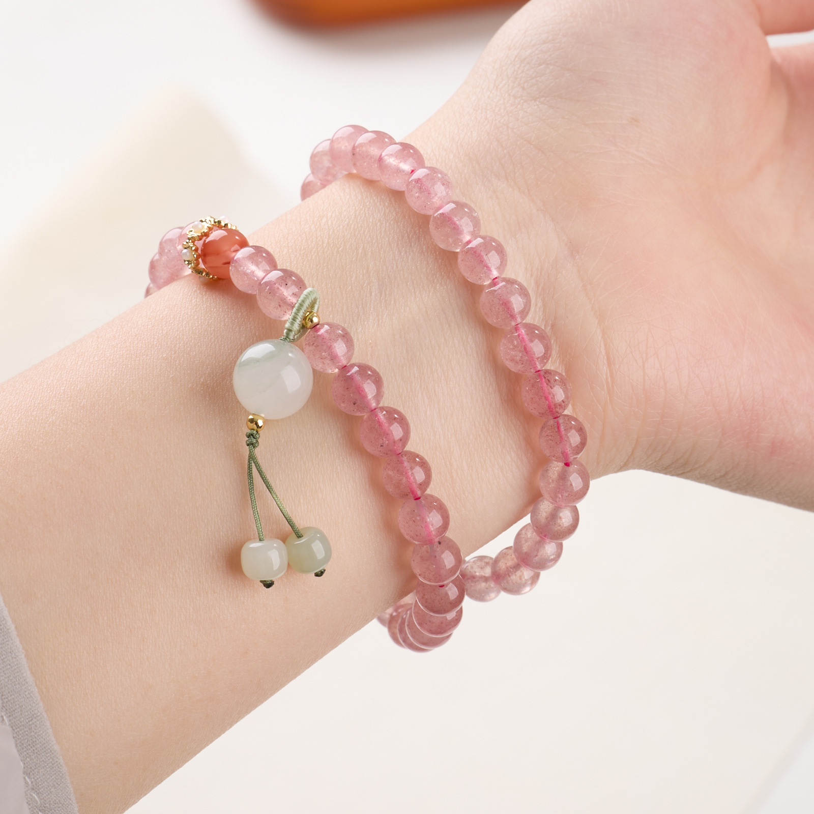 |名称|6MM草莓晶 双圈手链