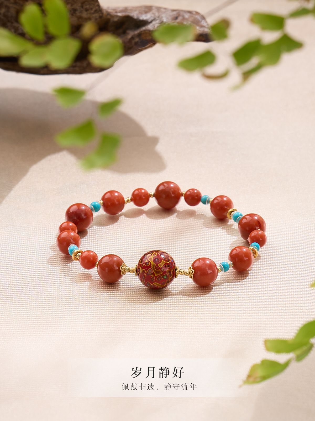 |主材|南红玛瑙,红色大漆珠,绿松石,铜镀金配件