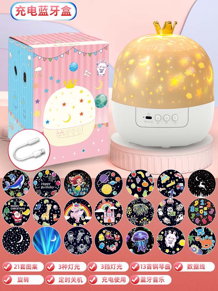 产品标配:梦幻皇冠投影灯*1;USB电源线*1;说明书*1;投影胶片*21;遥控器*1(仅充电款)