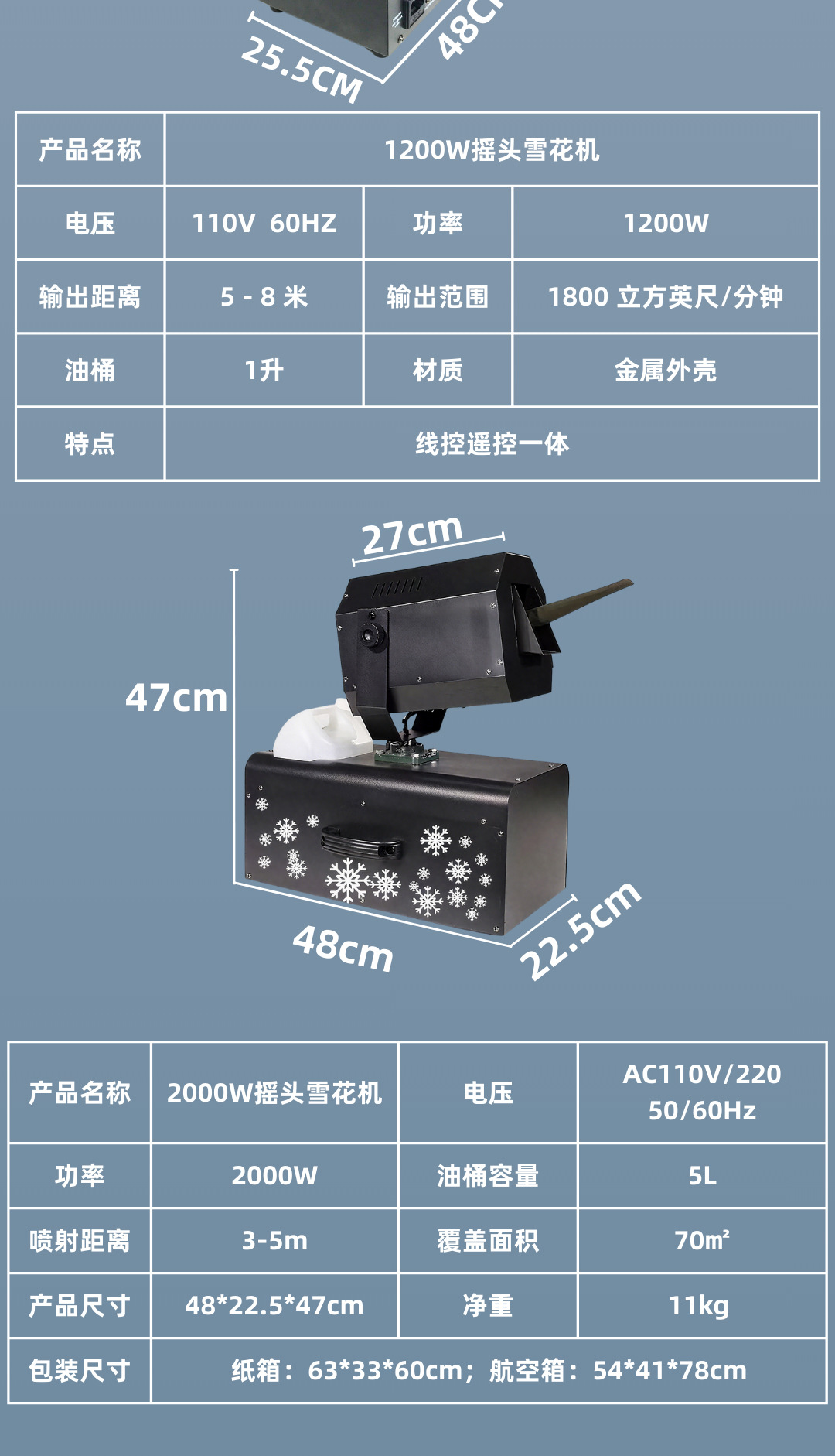 产品名称:1200W摇头雪花机